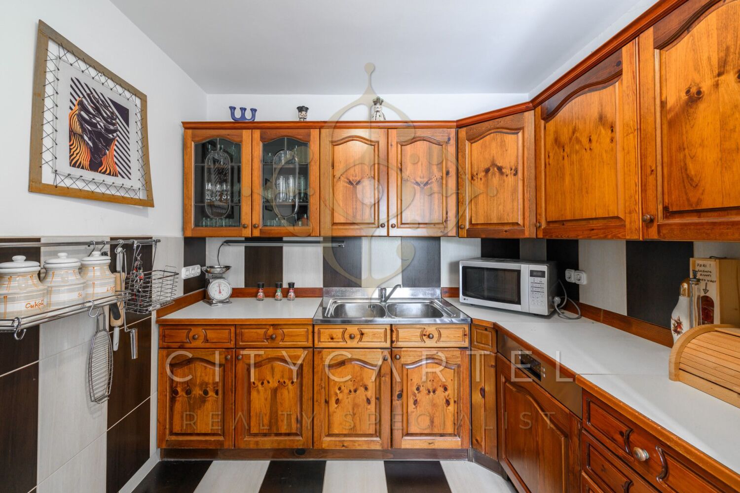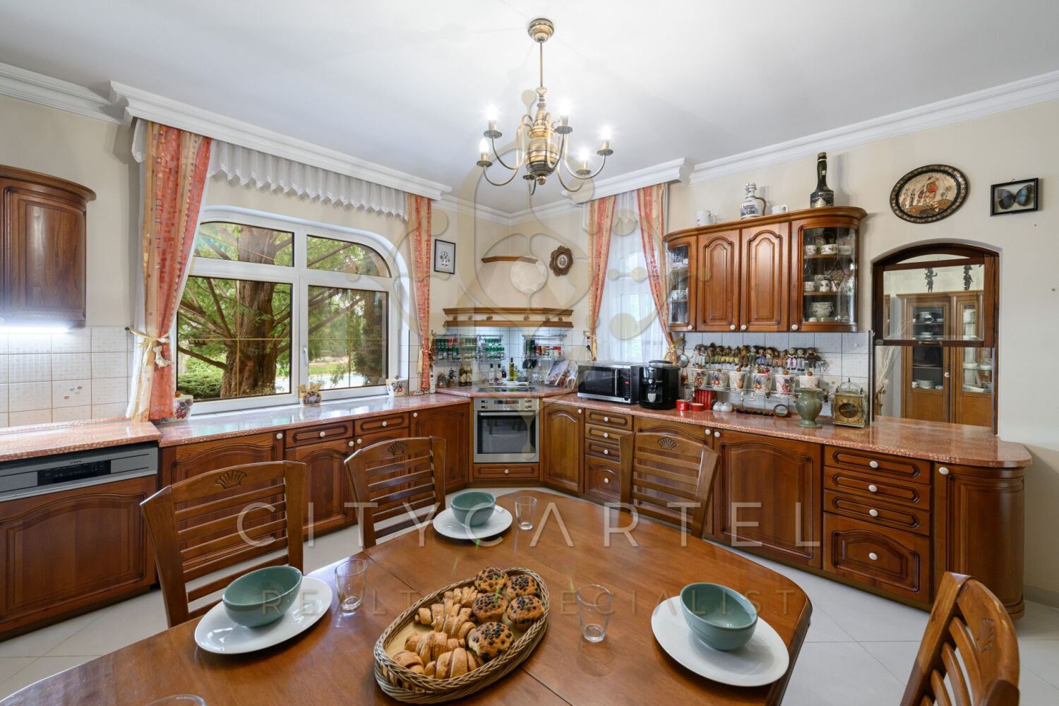 Az elegáns, nagypolgári stílusnak megfelelően az étkezőben legalább 12 főre teríthetünk, és a konyha külön, elválasztva került elhelyezésre, azonban átadó ablakon keresztül biztosított az egyszerű tálalás.