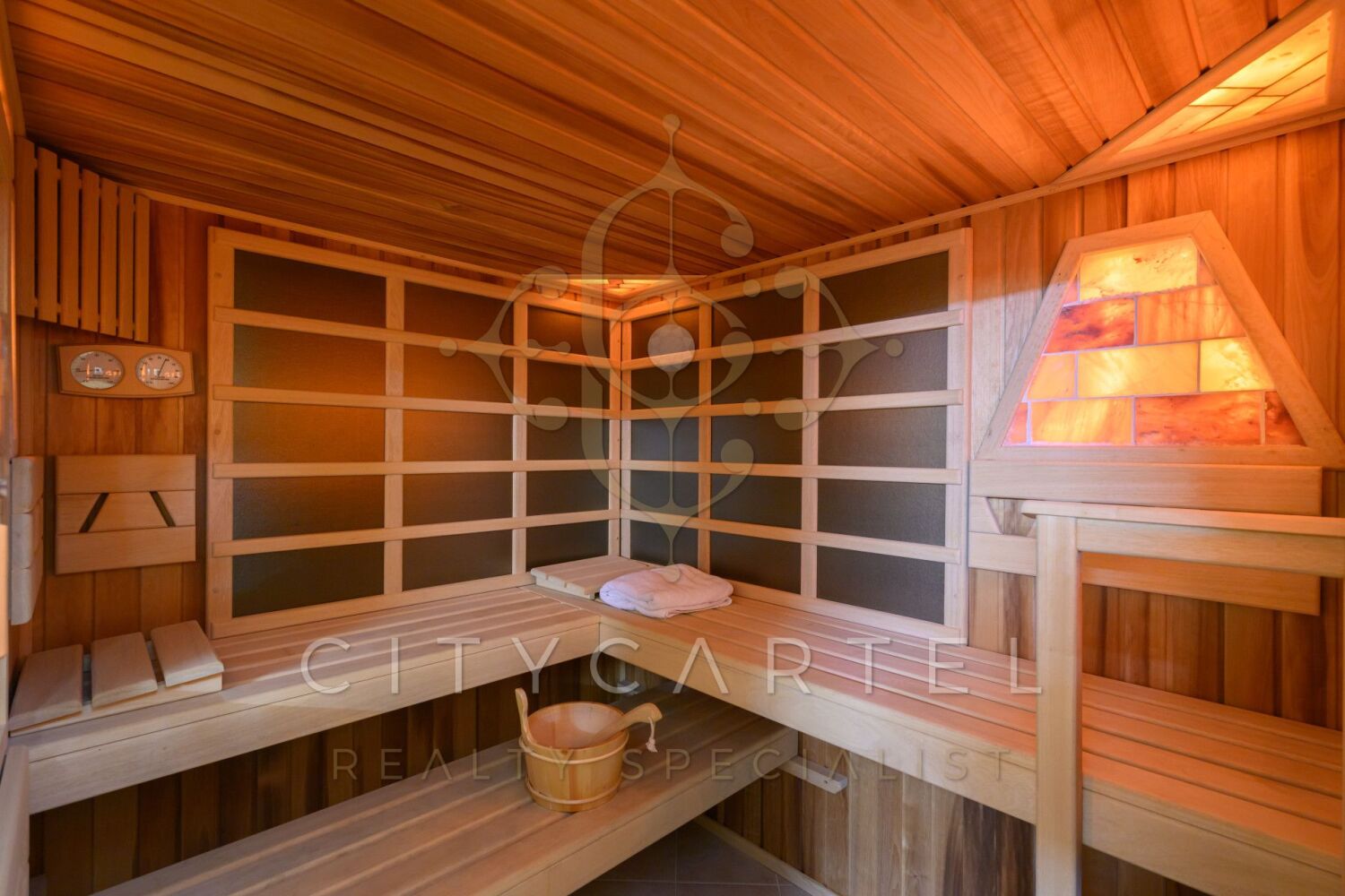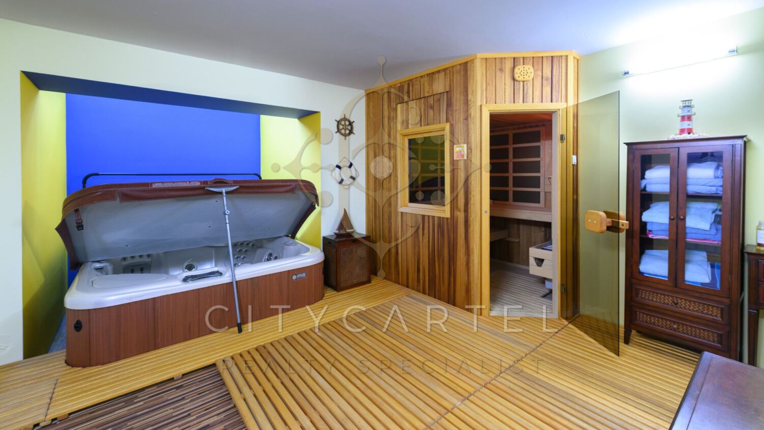 A háznak van légcserélő rendszere, amellyel központilag lehet hűteni és fűteni is. Minden helyiség ablakos, és további 8 hűtő-fűtő klíma is gondoskodik a kellemes hőmérsékletről, de a kazánra kötött hőszivattyú (16 kw) automatikusan bekapcsol a fűtéshez szükség esetén.