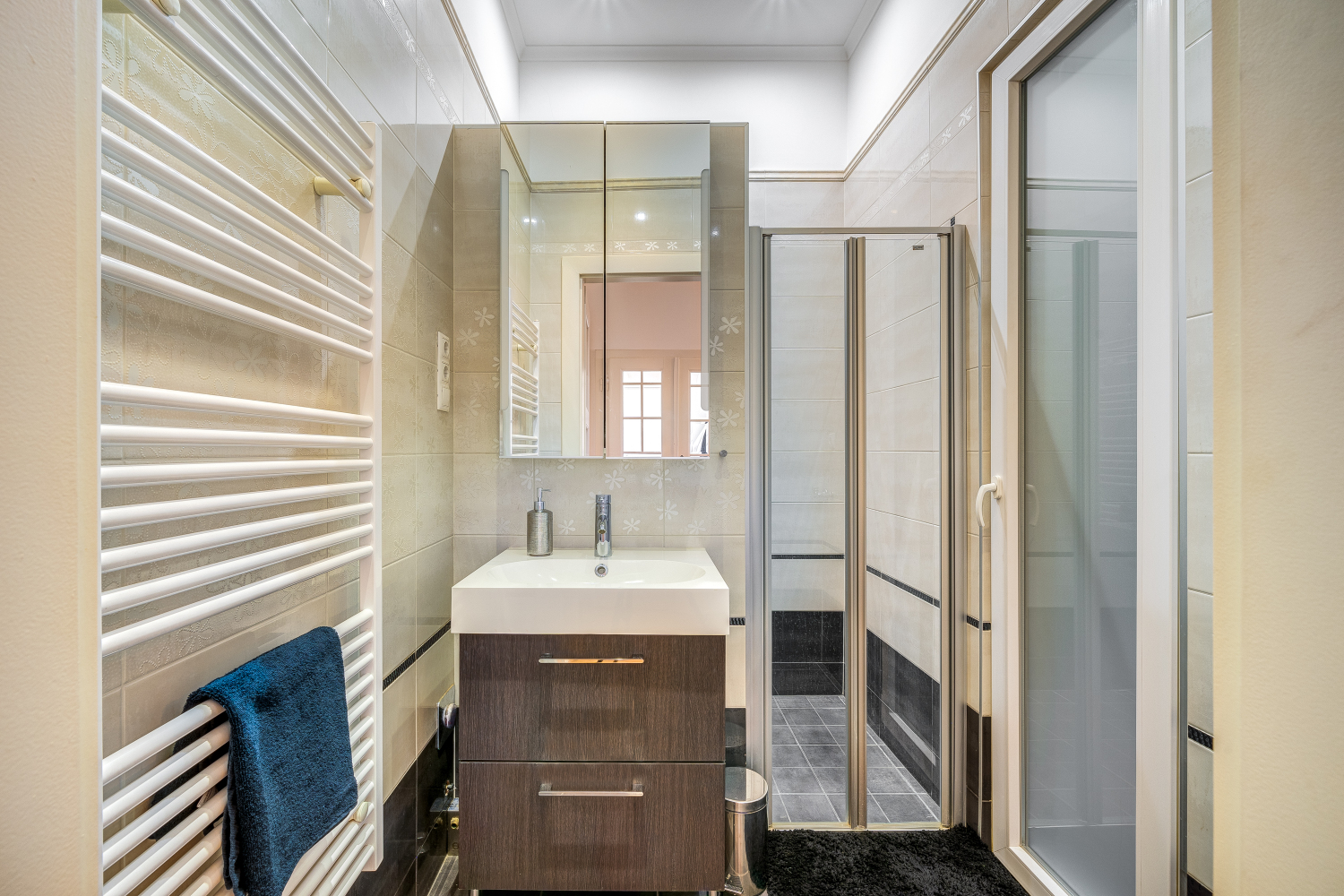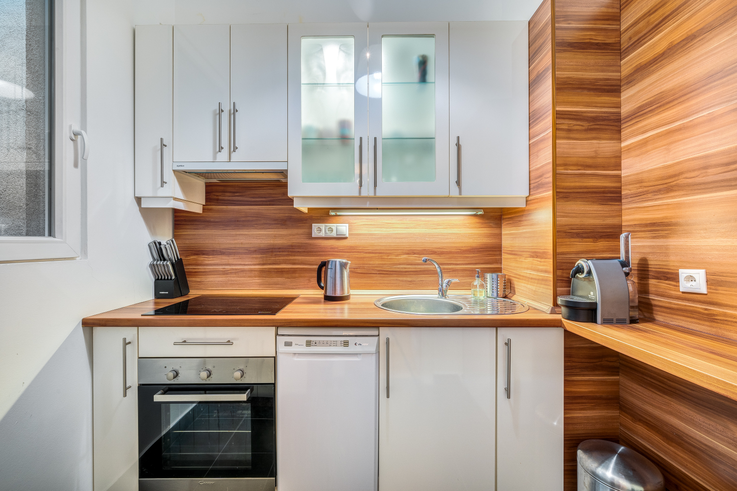 The west-facing apartment is gorgeously sunny, thanks to a large balcony that overlooks a beautiful green square. One bedroom on 70 sqm property is extremely spacious. Large entrance hall, mechanized kitchen, spacious dining room, built-in shower, living room with balcony and bedroom overlooking a courtyard. It is facilitated with air conditioner and alarm system.