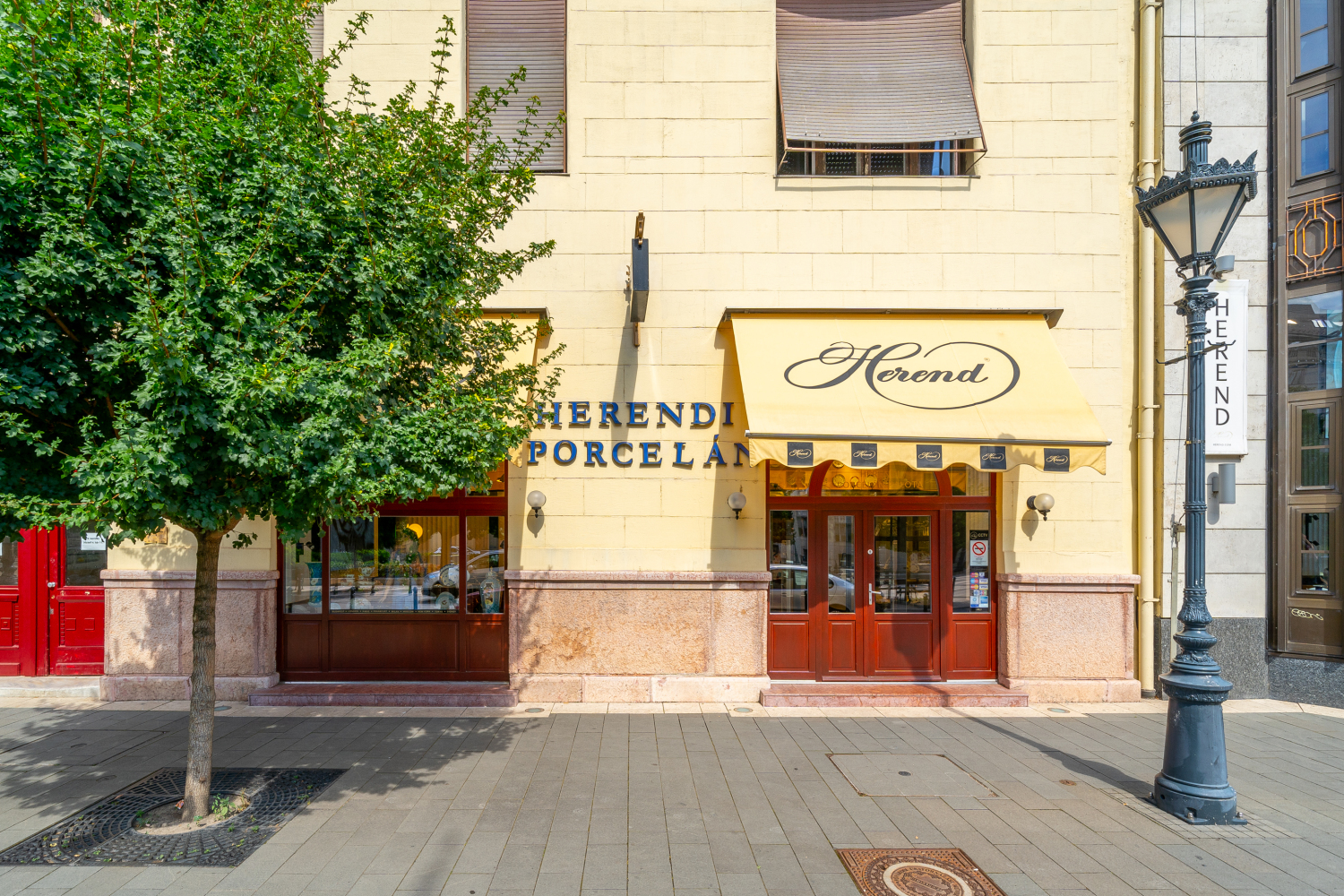 Az ikonikus épületben a Herendi Porcelán üzlete kapott helyett. A homlokzat is kiemelkedően jó állapotban van.