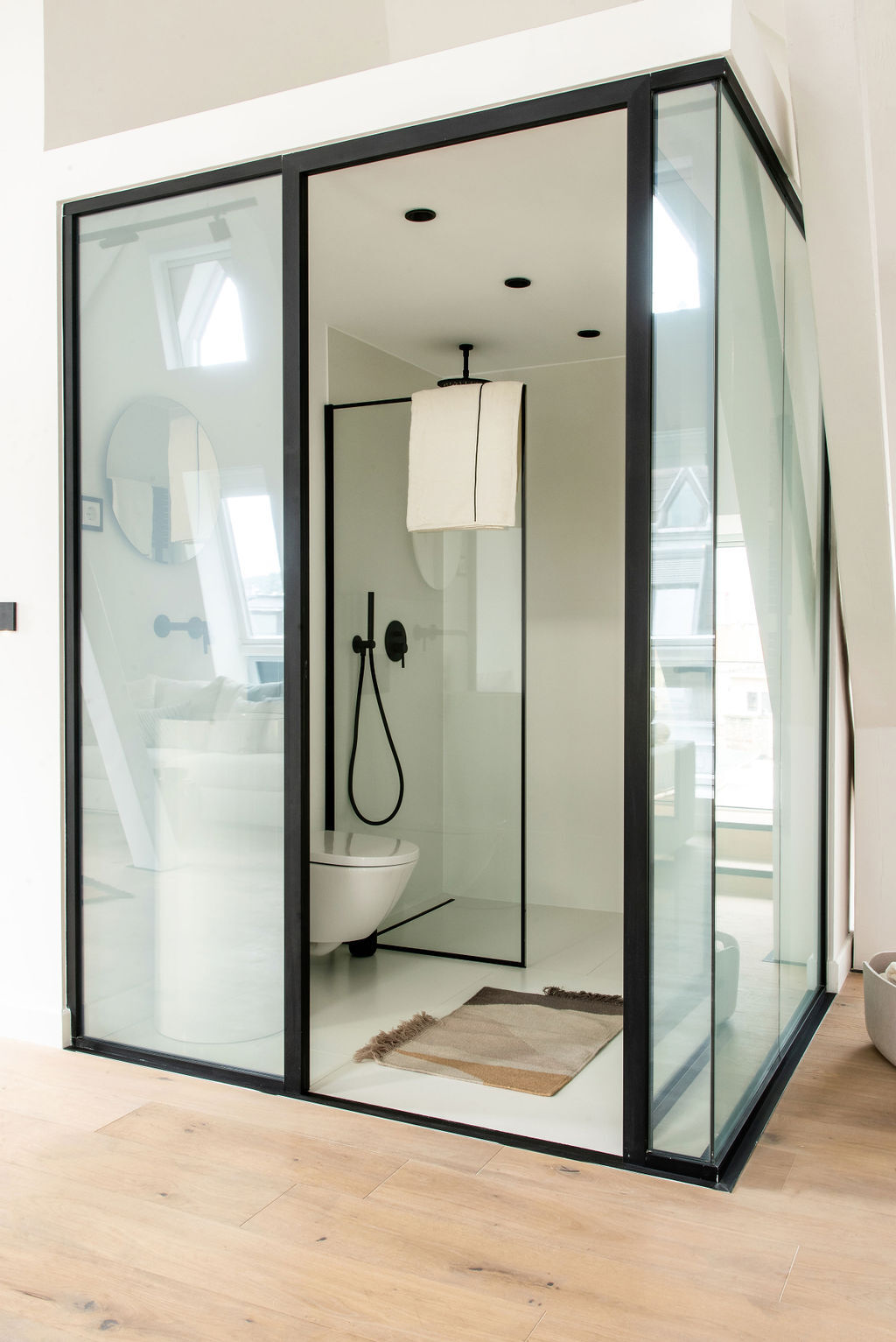 Intelligens üveg "kocka" fürdőszoba, mely szintén egyedülálló a budapesti ingatlanpiacon.