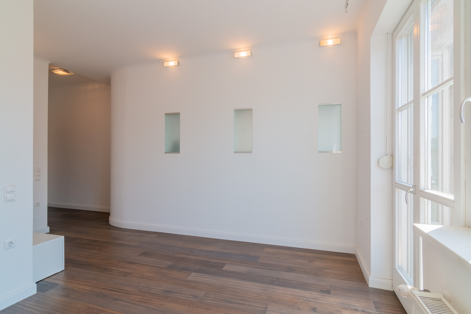 Az amerikai konyhás nappali mellett, 2 szoba, gardróbszoba, fürdőszoba található a lakásban.