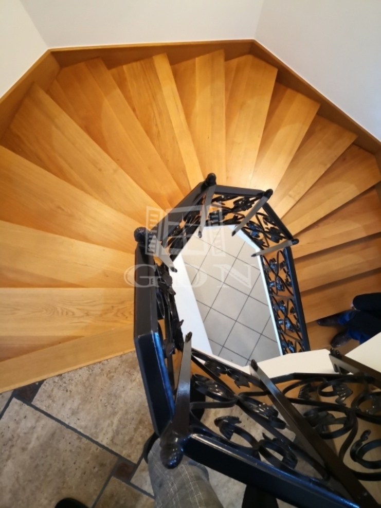 A földszinten egy elegáns bejáraton lépünk be a másik oldalon teraszra nyíló tágas és világos nappali - étkezőbe, innen az ugyancsak erre a teraszra nyíló háló és dolgozó szobába, valamint ezen a szinten található egy szeparált, gépesített konyha, és egy fürdőszoba is.