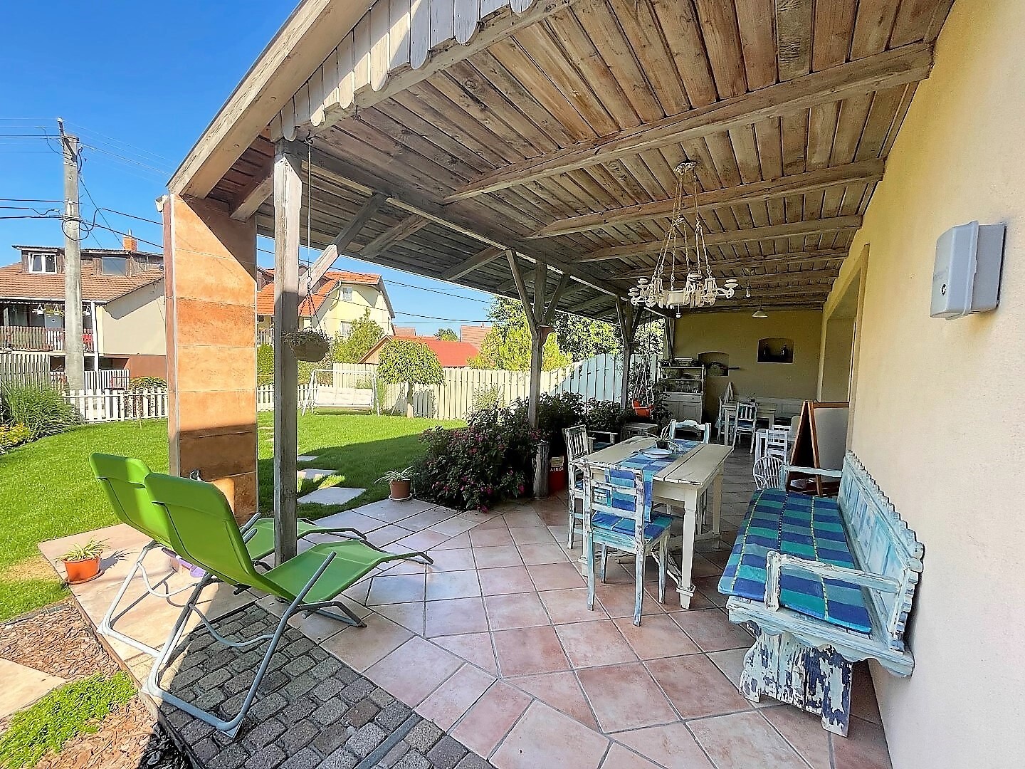 A teraszon át innen közvetlenül a kertbe jutunk.
