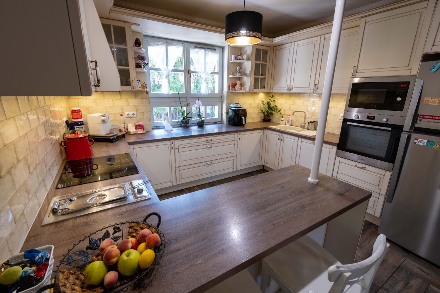 A fűtés részben padló és radiátoros. A vegyes tüzelésű kandalló kellemes meleget ad az egész alsó szintnek.