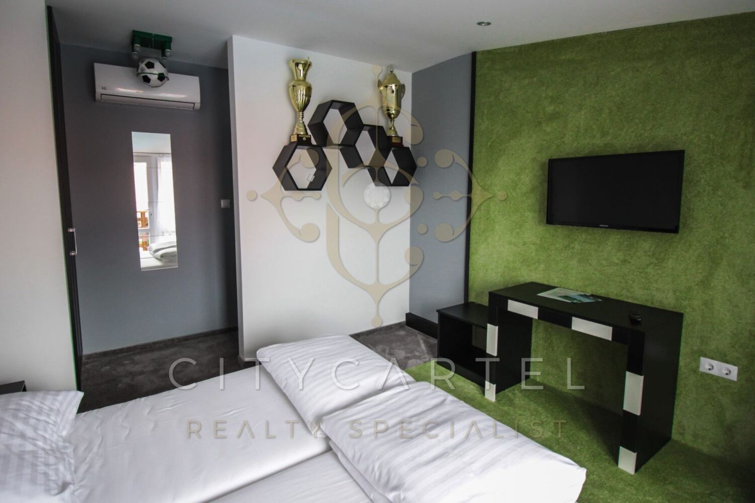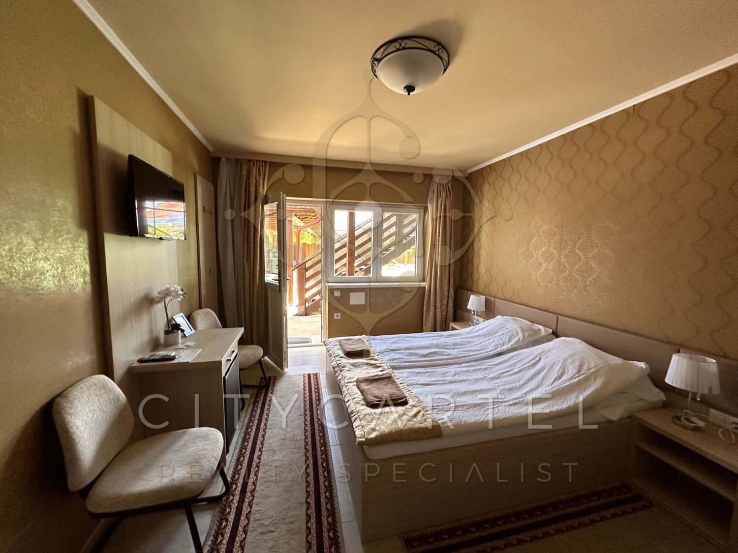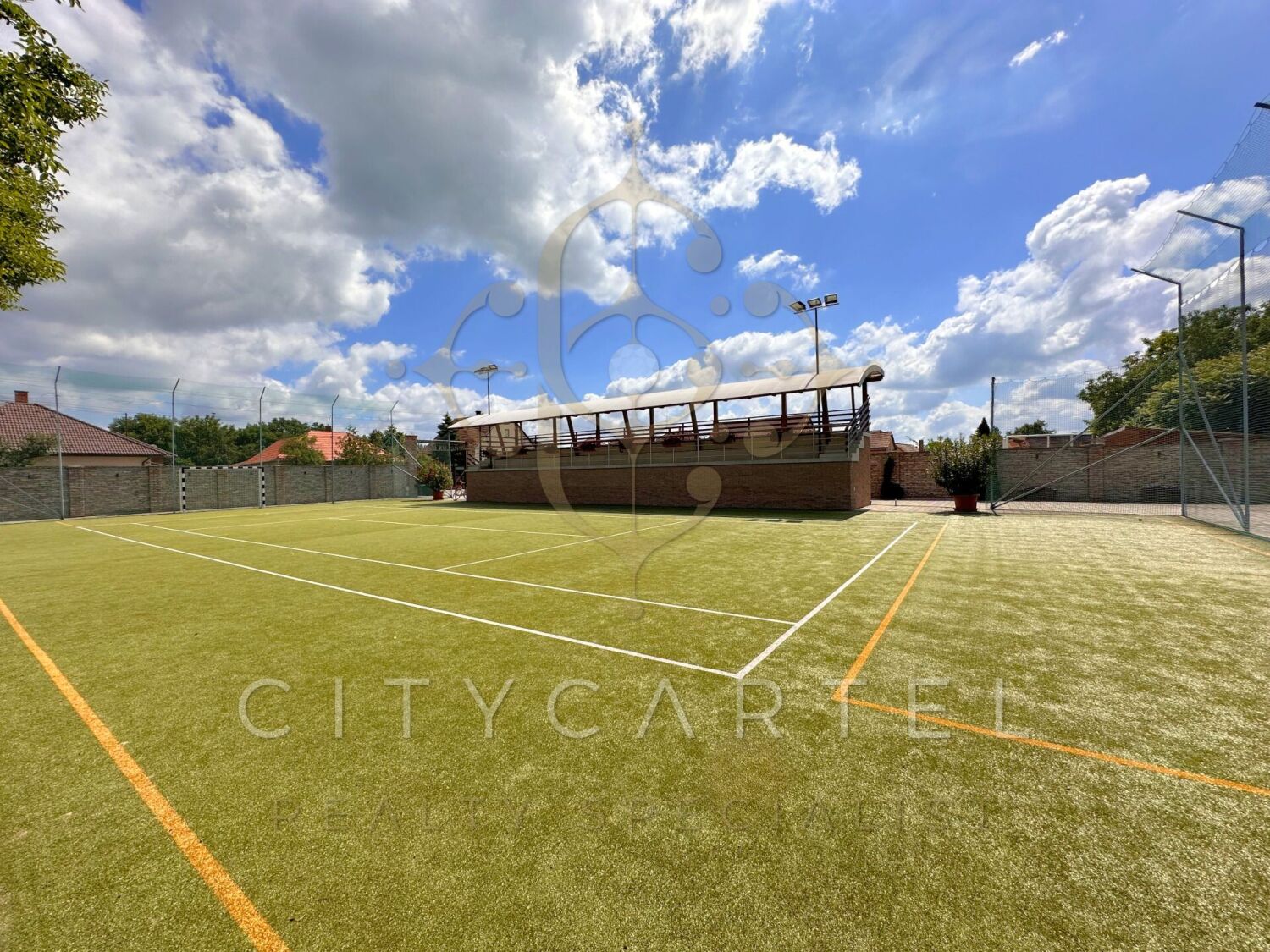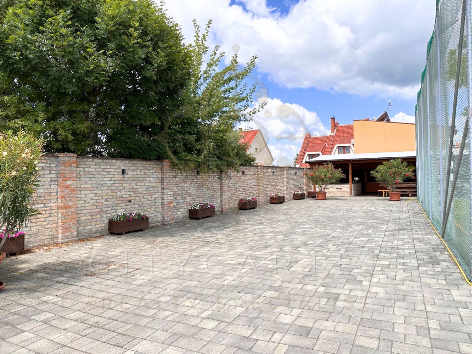 The complex can be divided into four main units: the restaurant-bar-wellness event hall located in the corner building built in 2016 at the intersection, directly on the street front, next to the inner plot boundary, the pool-facing building built in 2016 and then expanded in 2022 , cozy, 2-story, 9-room hotel, shared by the two buildings approx. 100 m² outdoor pool and jacuzzi with a grill terrace serving the above, as well as a sports court and stands suitable for tennis and football pitches accessible from the separate street entrance.