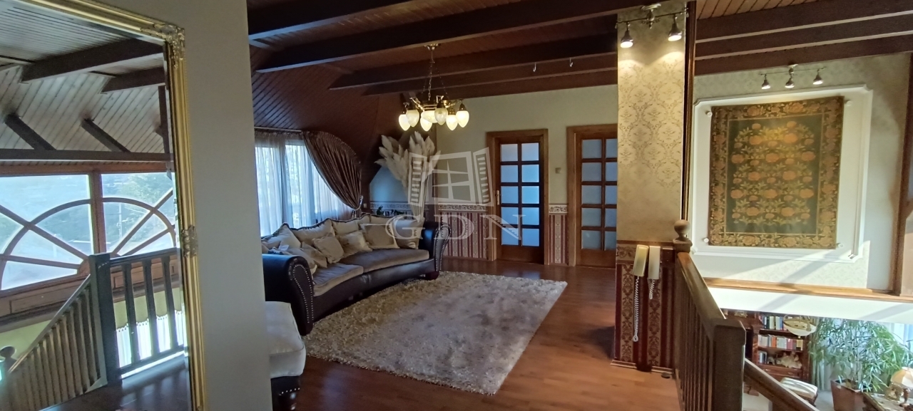 - Sofa és egyedi fa nyílászárók, (2022-ben a nappali nagy ablaka és a felső szinten lévő terasz ablaka cserélve lett (3 rétegű üvegre)
