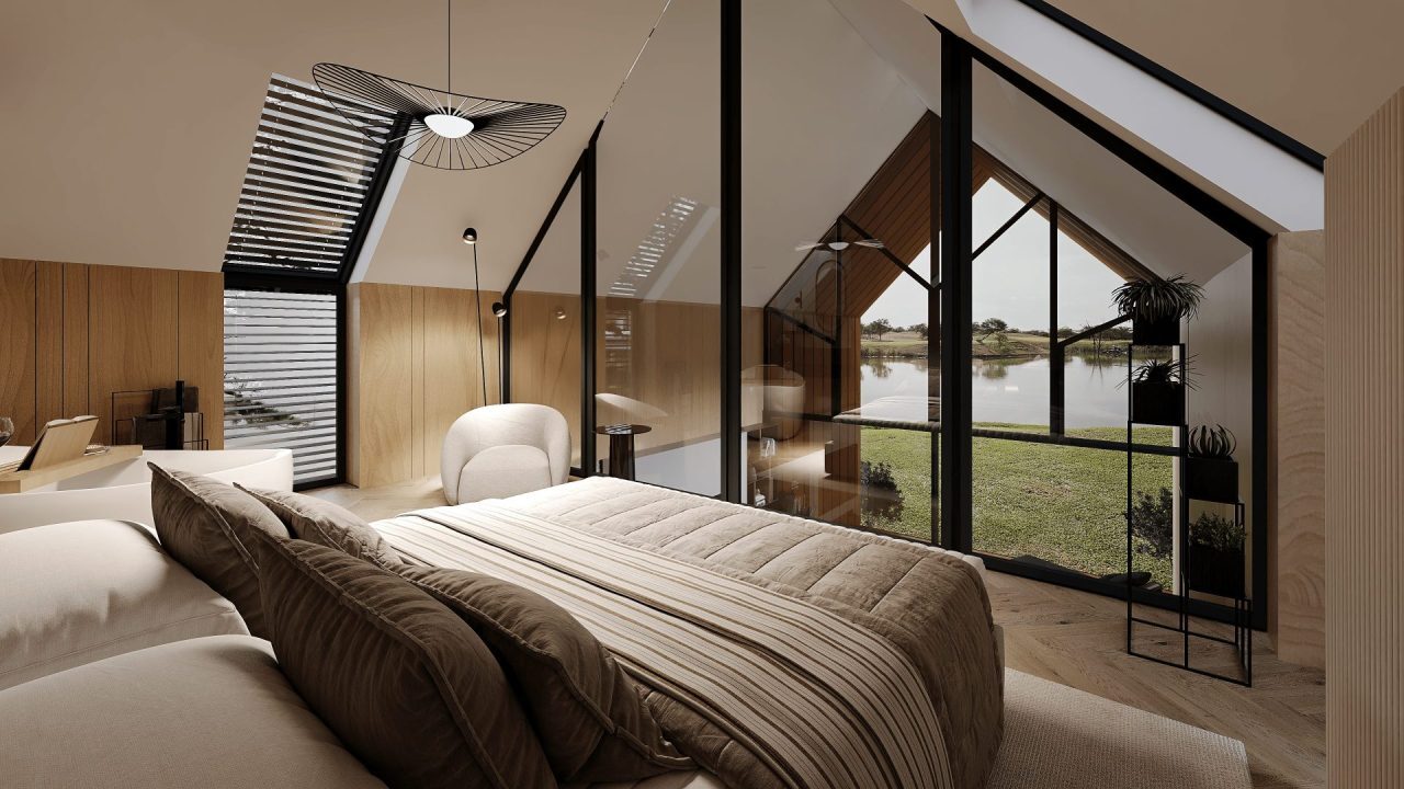 Az ingatlan minden centimétere jól átgondolt, 3 szobával és tágas nappalival rendelkezik. A minimál és a design elemek mellett egy formabontó lépcsőfeljáró is található a házban.