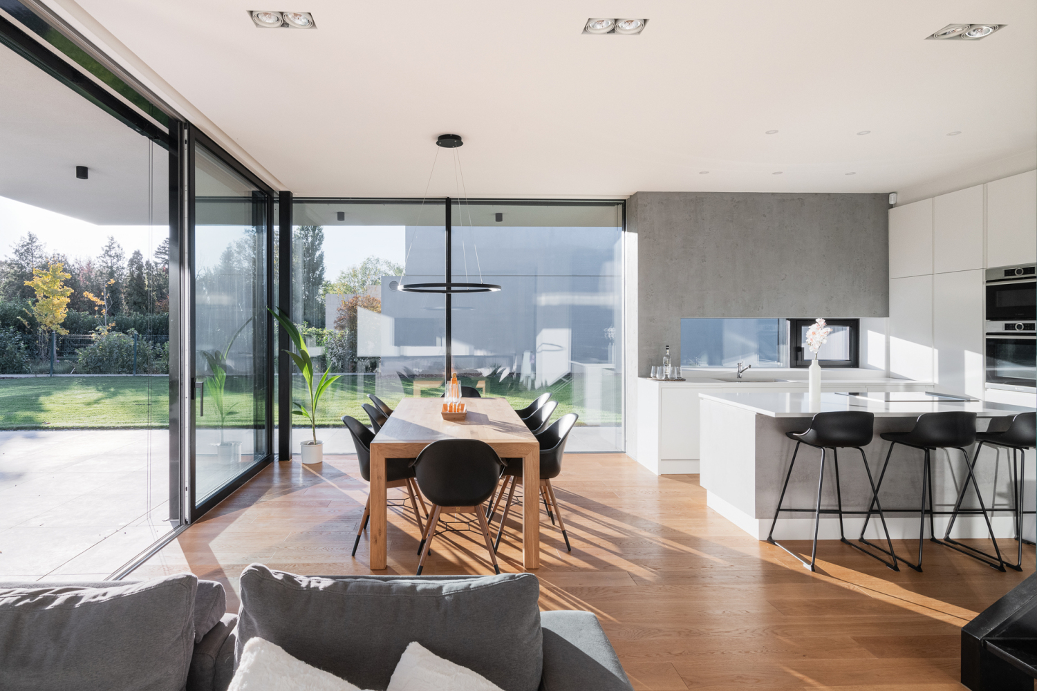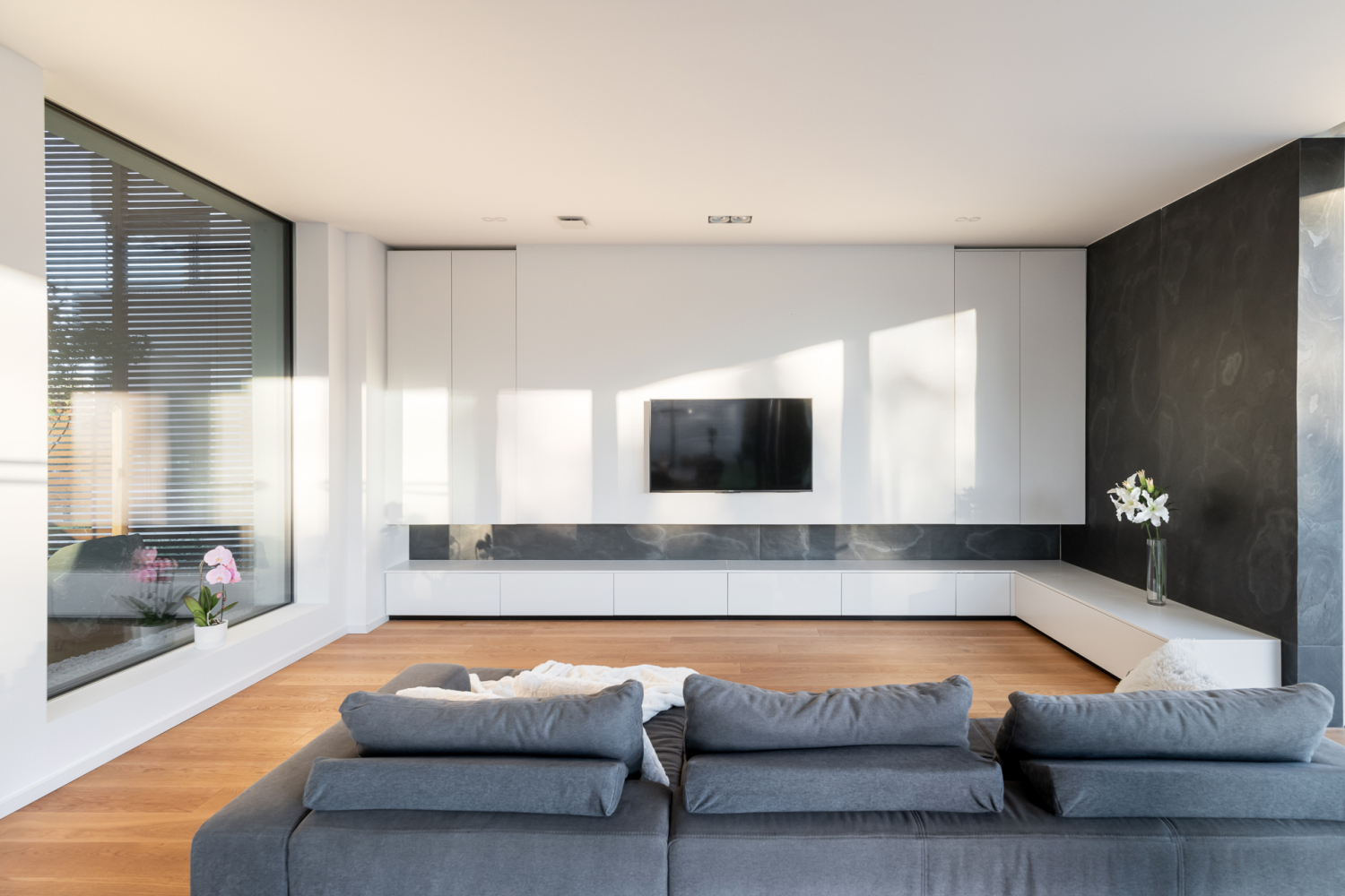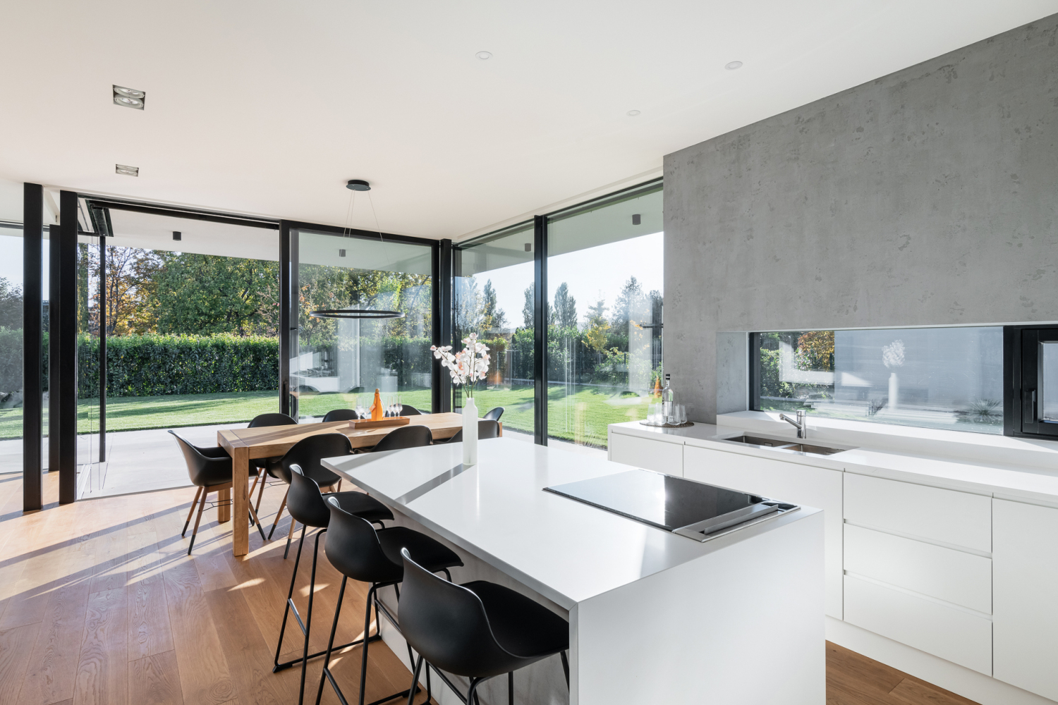 The technical equipment of the villa was realized with the most modern technologies: heat pump ceiling cooling-heating, underfloor heating, full ventilation and aeration system, heated garage, formwork on all doors and windows, garden sauna,
