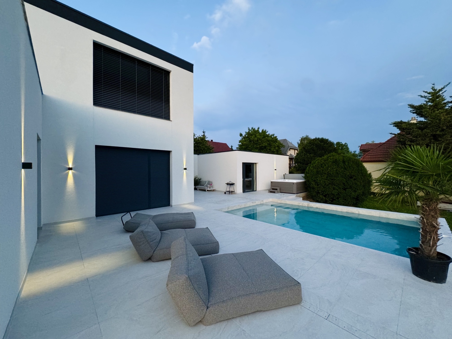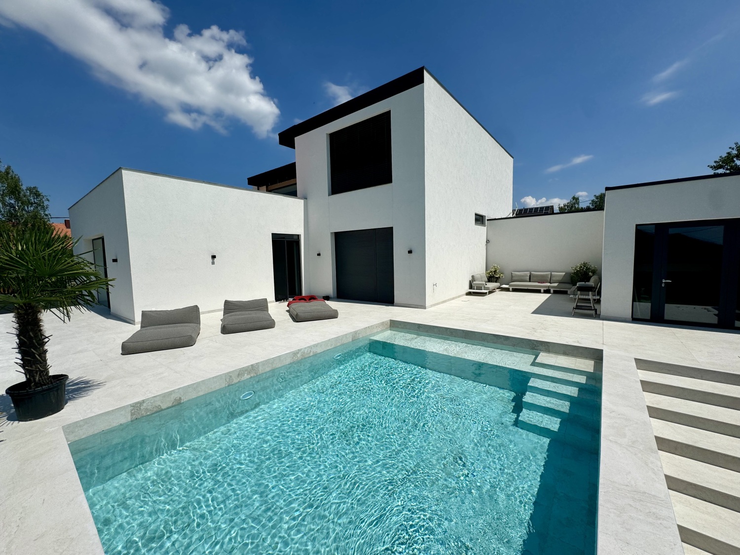 Magánszemélyől eladó, saját részre épitett és tervezett, minimalista stílusú ingatlanban a legmagasabb minőségű anyagok és legújabb technológiák kerültek felhasználásra.