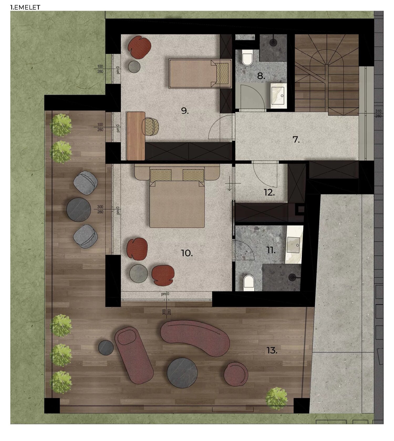 Ebben az egyedülálló zöld környezetben, csendes zsákutcában 2 db villaépületben összesen 7 db (74-216 nm), exkluzív villalakást terveztünk; hatalmas teraszokkal, saját kertrésszel, lakásonként 2 db zárt parkolóhellyel és 1 db tárolóval.
