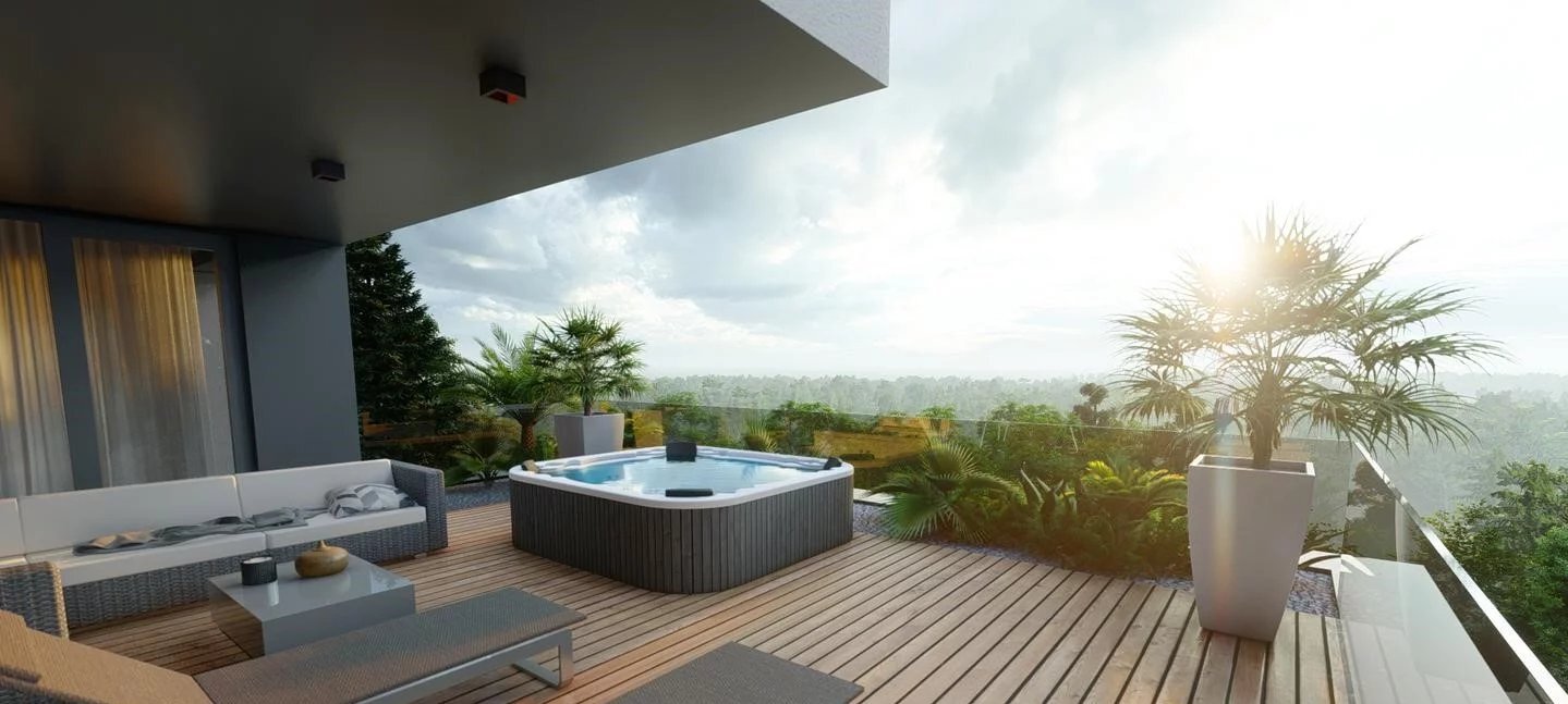 A társasházban három lakás lett kialakítva, 2-3 hálószobával, hatalmas terasszal és panorámás kilátással. Közös sütögető- spa rész, szaunahelyiség, sportterem kialakítására is sort kerített a projekt megálmodója. Lakásonként 1-1 zárt garázsbeálló áll rendelkezésre, illetve egy 4 nm-es tároló megvásárolható (Ára: 8,5 Millió Ft).