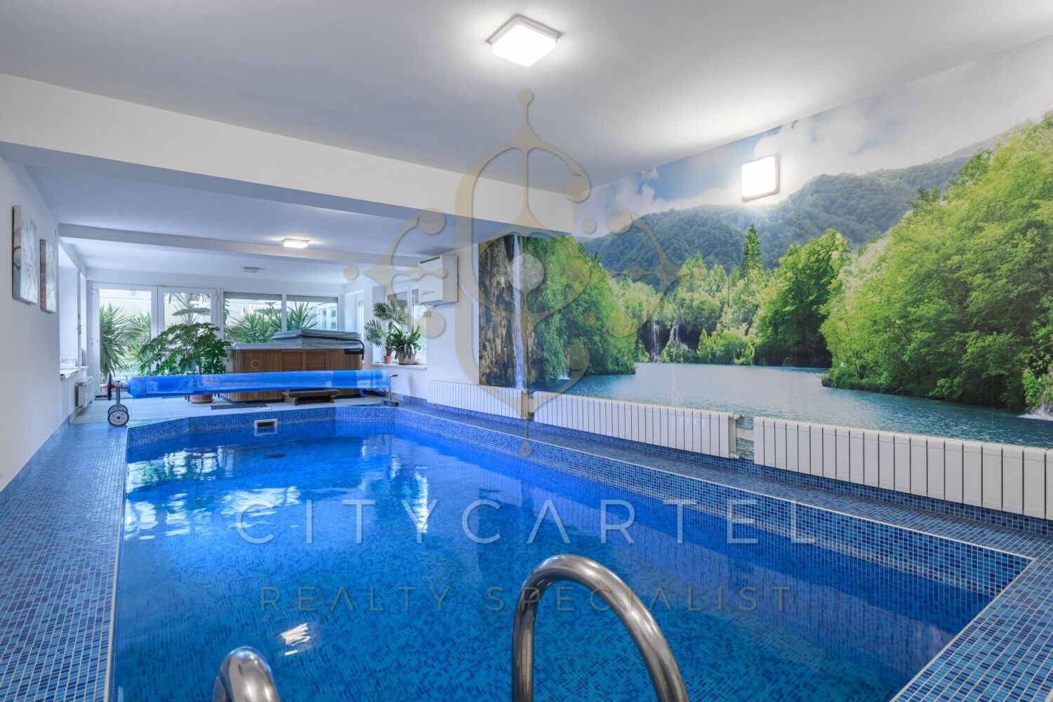 LUXUS CSALÁDI HÁZ BELSŐ MEDENCÉVEL eladó Üröm Péterhegyen!