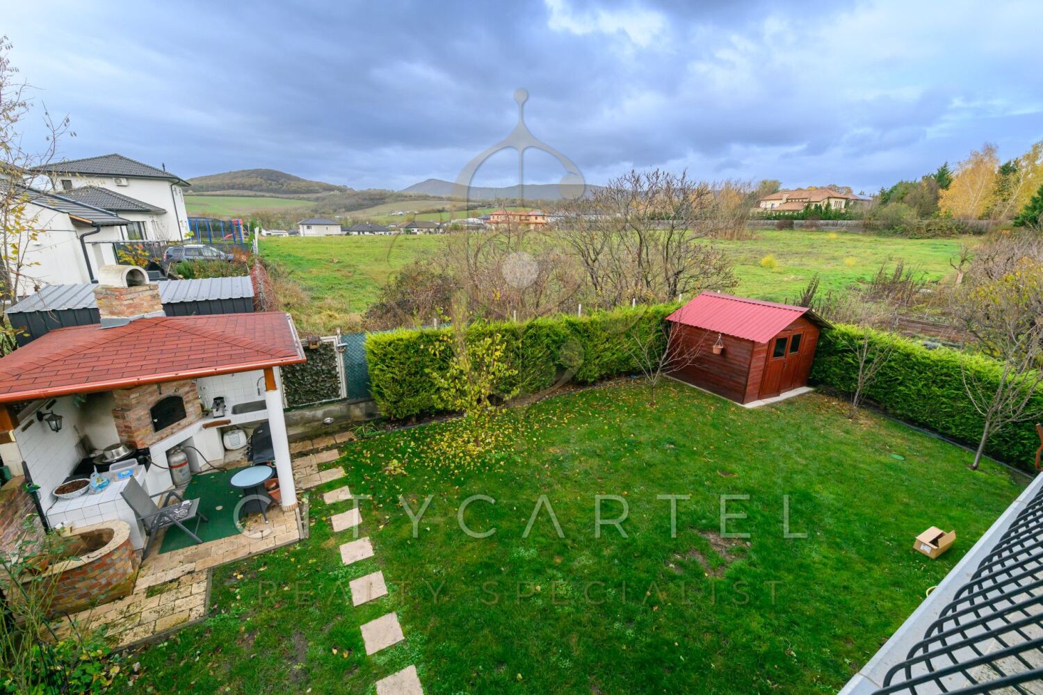 A ház a 800 nm-es telek fenti (hátsó) részén helyezkedik el, alsó szintjén dupla garázzsal, mellette wellness részleggel: itt található a benti úszómedence, JACUZZI, szauna, kondiszoba, háztartási helyiségek, mosókonyha.