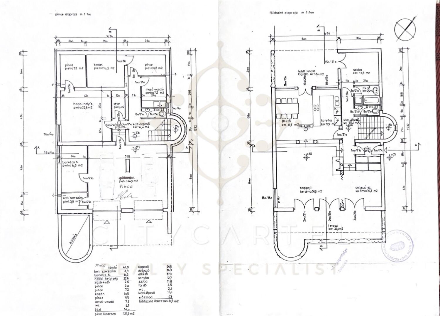 Mindkét ház 420 nm alapterületű, nappali + 5 szoba elrendezésű 3 fürdőszobával, BELSŐ MEDENCÉVEL, SZAUNÁVAL.