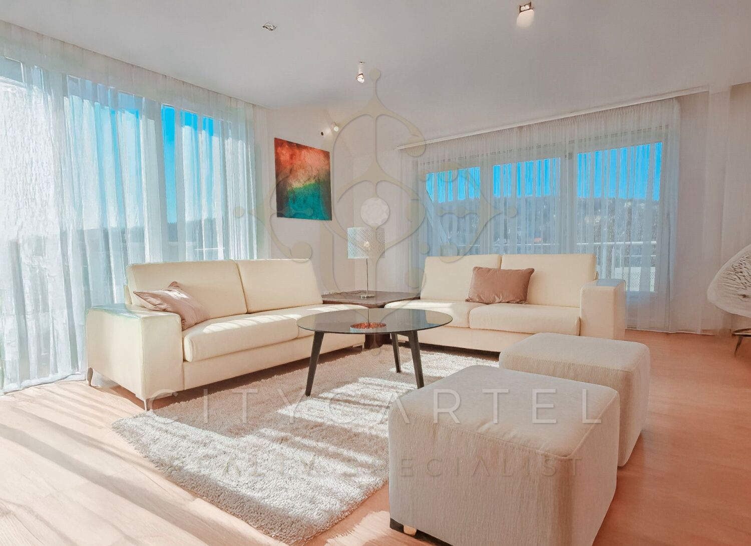 The apartment's intelligent system, built-in unique furniture and mechanized kitchen all represent the highest level of quality. The panoramic view, ceiling cooling-heating, central vacuum cleaner, and security systems (alarm, camera) ensure a calm and safe living environment.