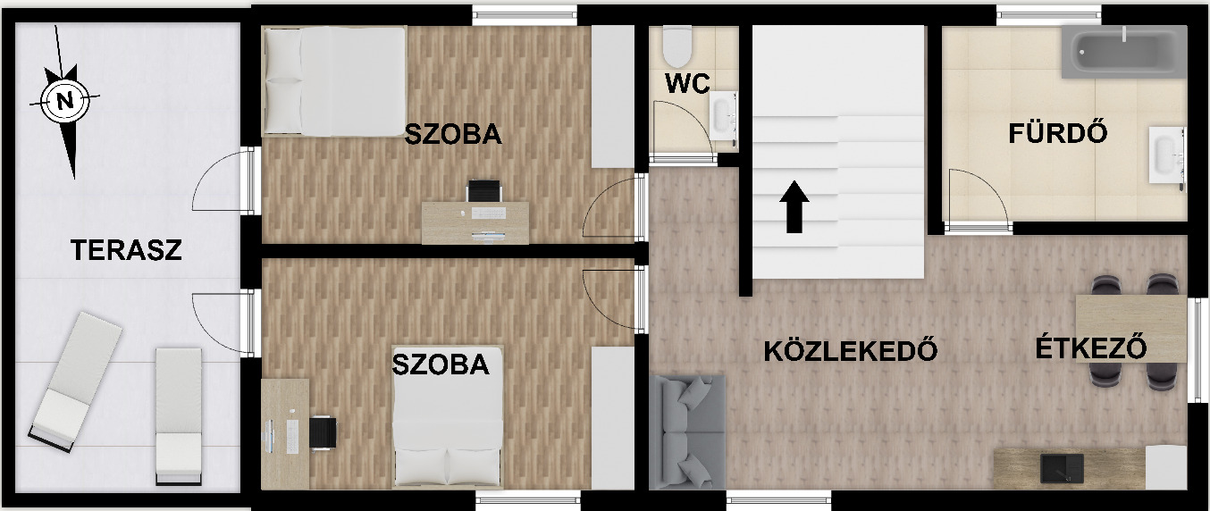 A ház beépített bútorokkal, teljes konyhai berendezésekkel eladó. A berendezési tárgyak megbeszélés kérdése.