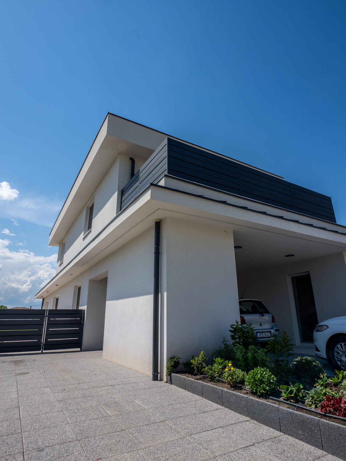 Az ház 2023-ban épült beton alapra, könnyűszerkezetes építési móddal. 34 cm-s főfal vastagsággal. A falban 15 cm Rockwool szigetelés, a falon kívül 10 cm-s homlokzati szigetelés. A födémben 40 cm szigetelés található. Az emeleti szinten a járó felületen alatt 8 cm úsztatott beton található. A tető lapos tető korszerű PVC fedéssel. A nyílászárók háromrétegű műanyag ablakok szúnyoghálóval felszereltek. Az épület energetikája rendkívül kedvező (AA++ energetika), a rezsije szinte nullához közeli. A fűtése 15KW-s napelemről működő elektromos padlófűtés, valamint minden helységben hűtő – fűtő klíma, továbbá a konyha nappali részben kandalló található. A melegvizet elektromos tároló biztosítja.