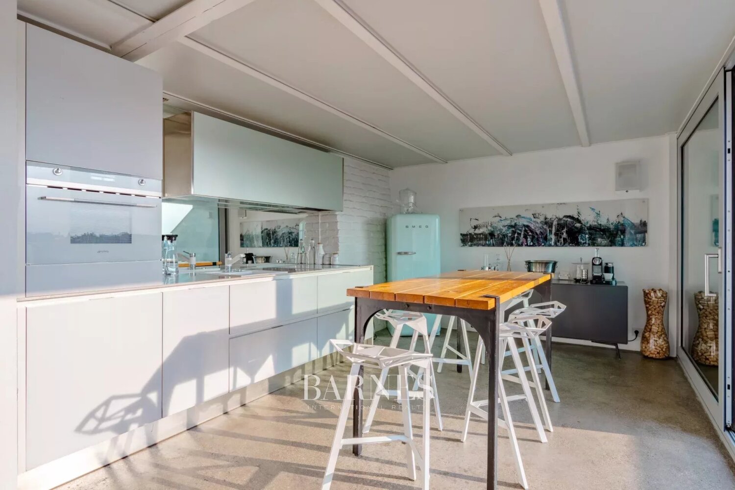 az első szinten egy tágas nappali található, kiválóan felszerelt amerikai konyhával ill., étkezővel, valamint közvetlen teraszkapcsolattal,