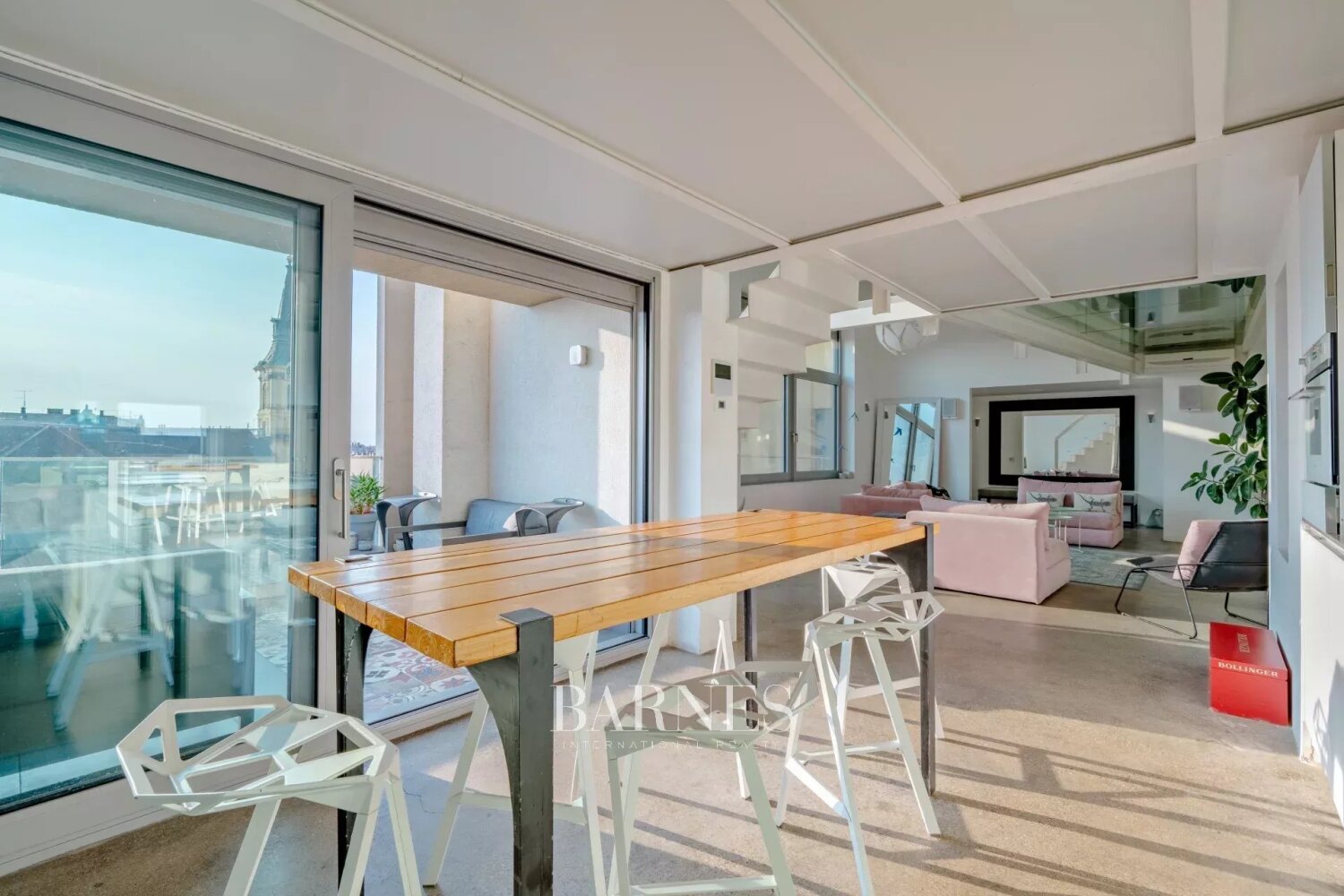 Budapest VI. kerületben, az Andrássy út közvetlen szomszédságában, egy 1914-ben épült műemlék épület rendezett liftes társasházában, megvételre kínálunk egy legfelső emeleti, 123 m2 alapterülettel rendelkező, 2013-ban felújított és szintráépítéssel tovább bővített, modern, extravagáns, tetőteraszos, belső két színtes, panorámás, loft jellegű lakást.