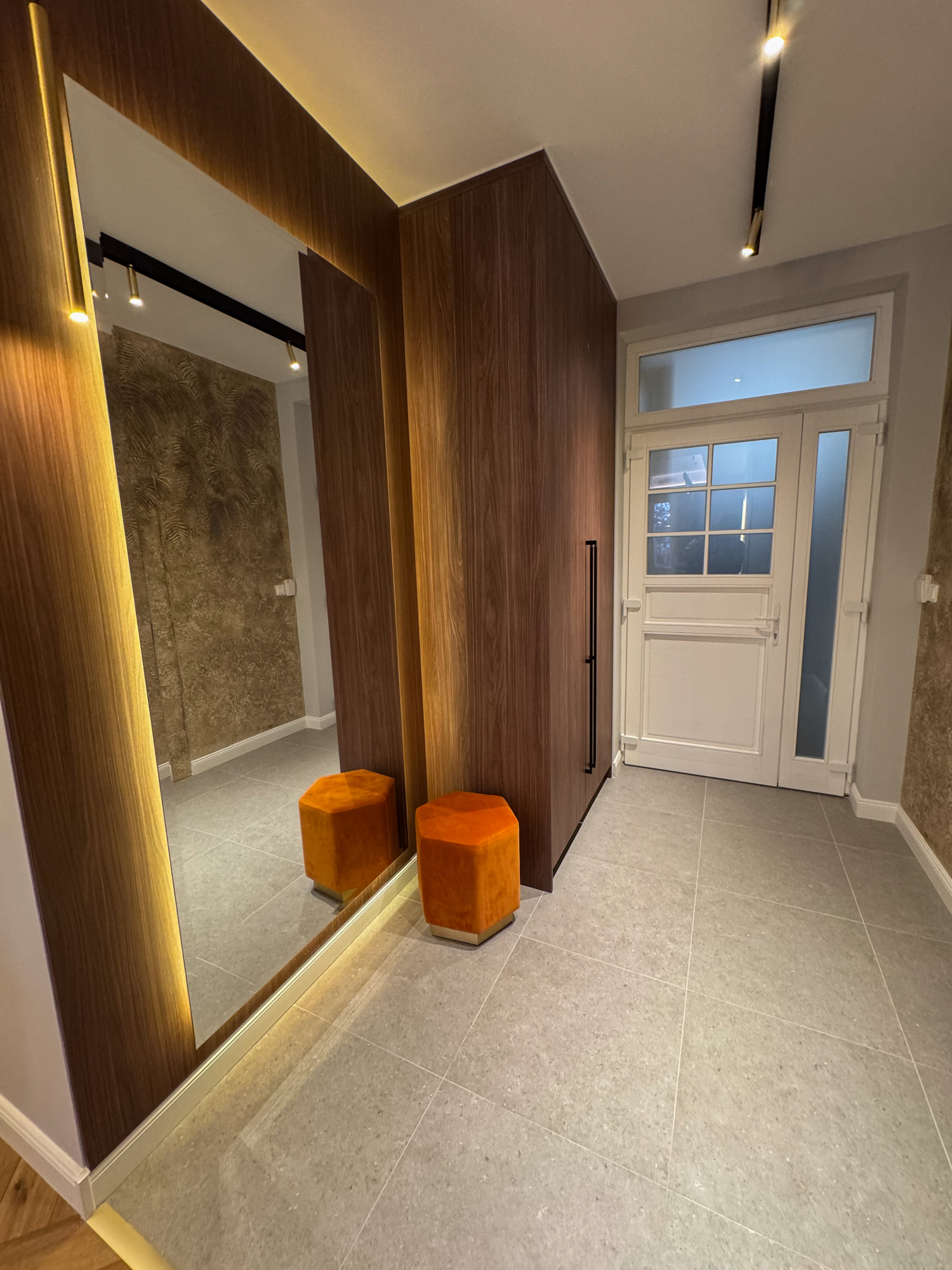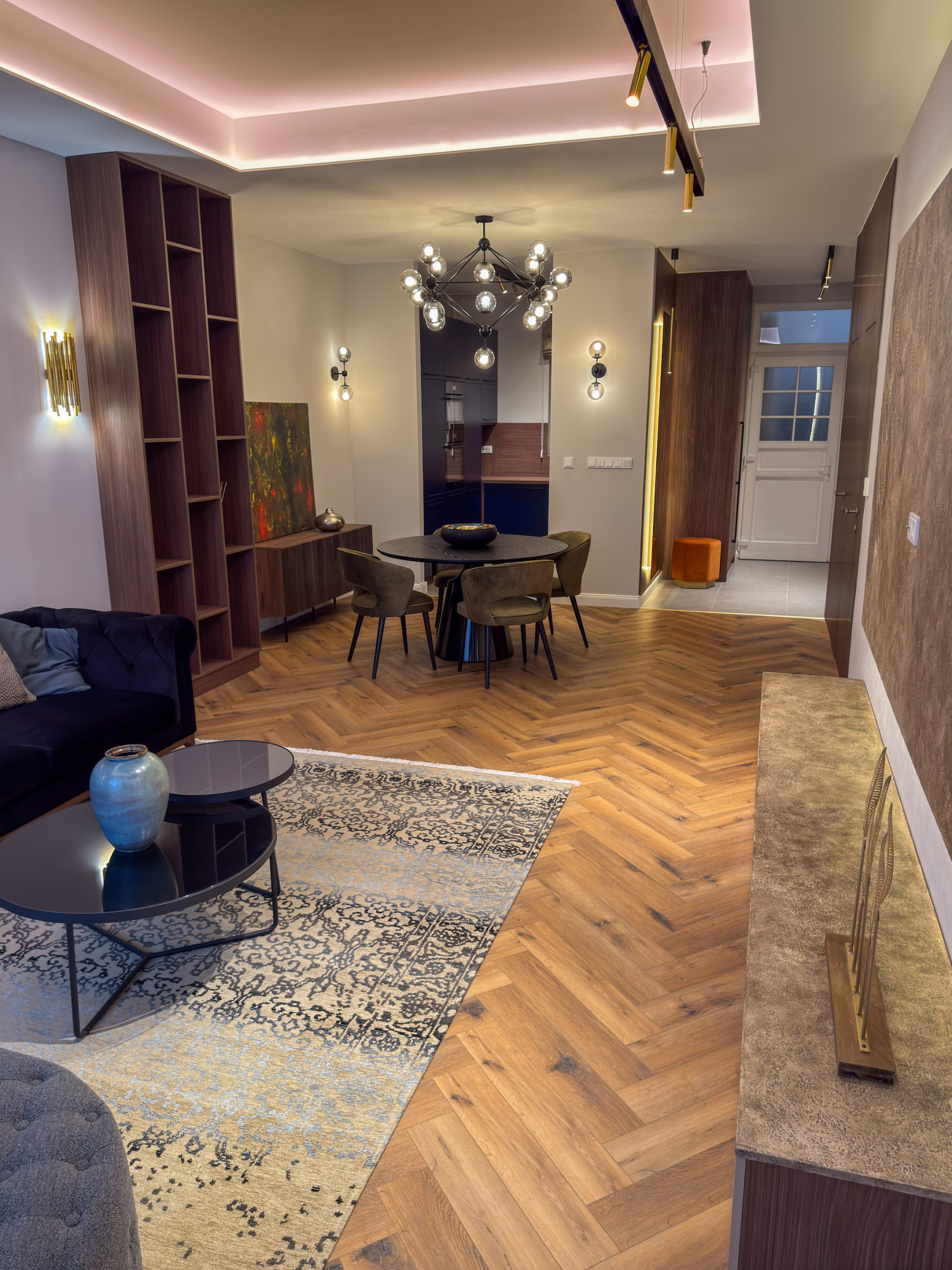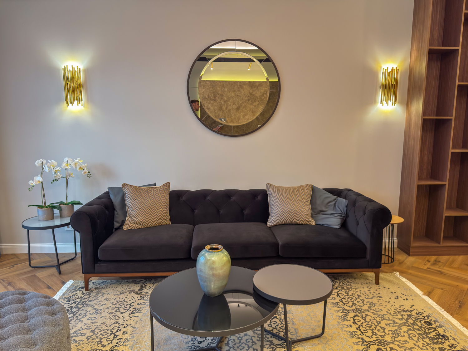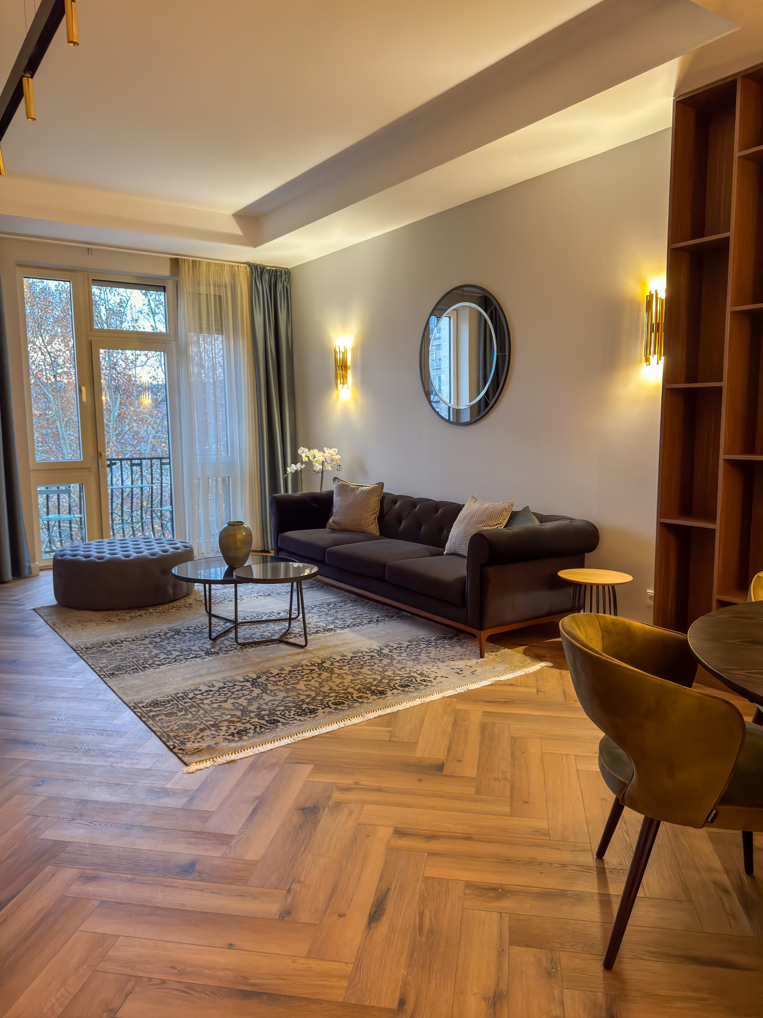This exceptional property is located in a prestigious, early 20th-century Art Deco-style building equipped with an elevator. The apartment was meticulously redesigned and rebuilt over a period of more than two years, based on plans by the renowned Haken Design Studio (led by Kriszta Kováts).