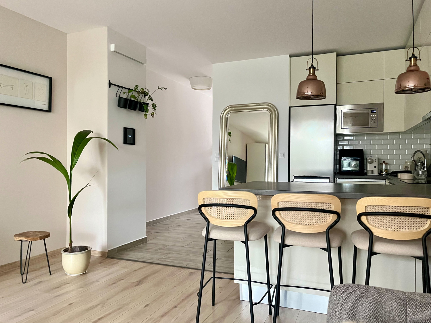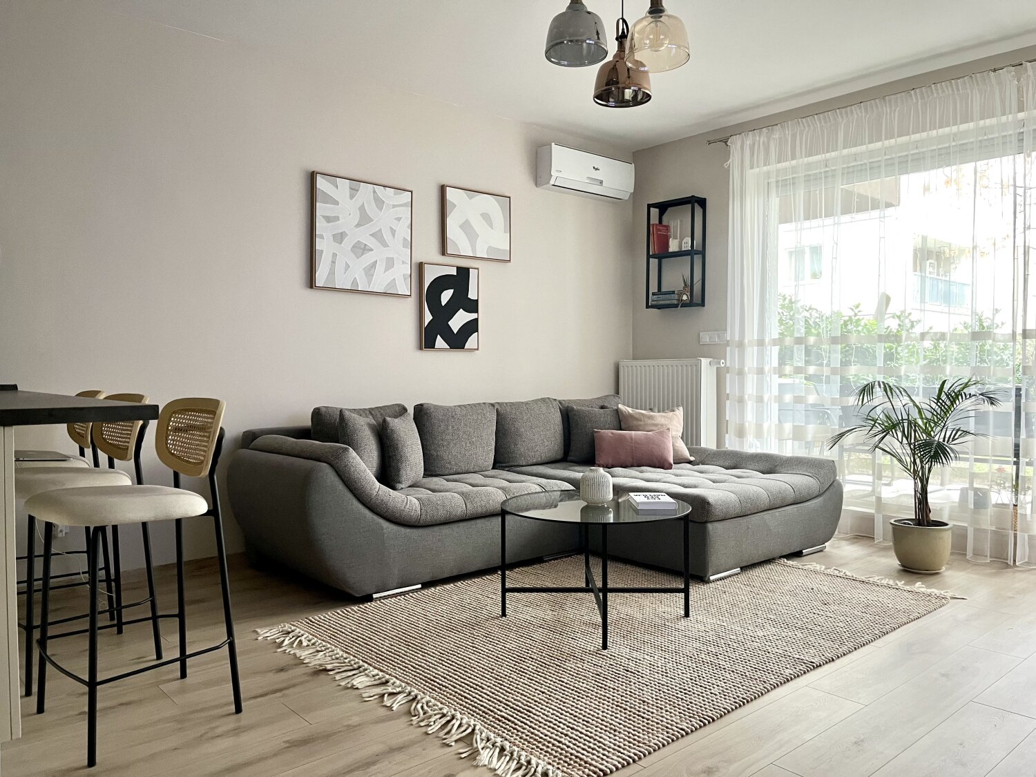 The apartment is equipped with 2 air conditioners, the kitchen, the hallway and the bedroom have unique furniture made by a carpenter.