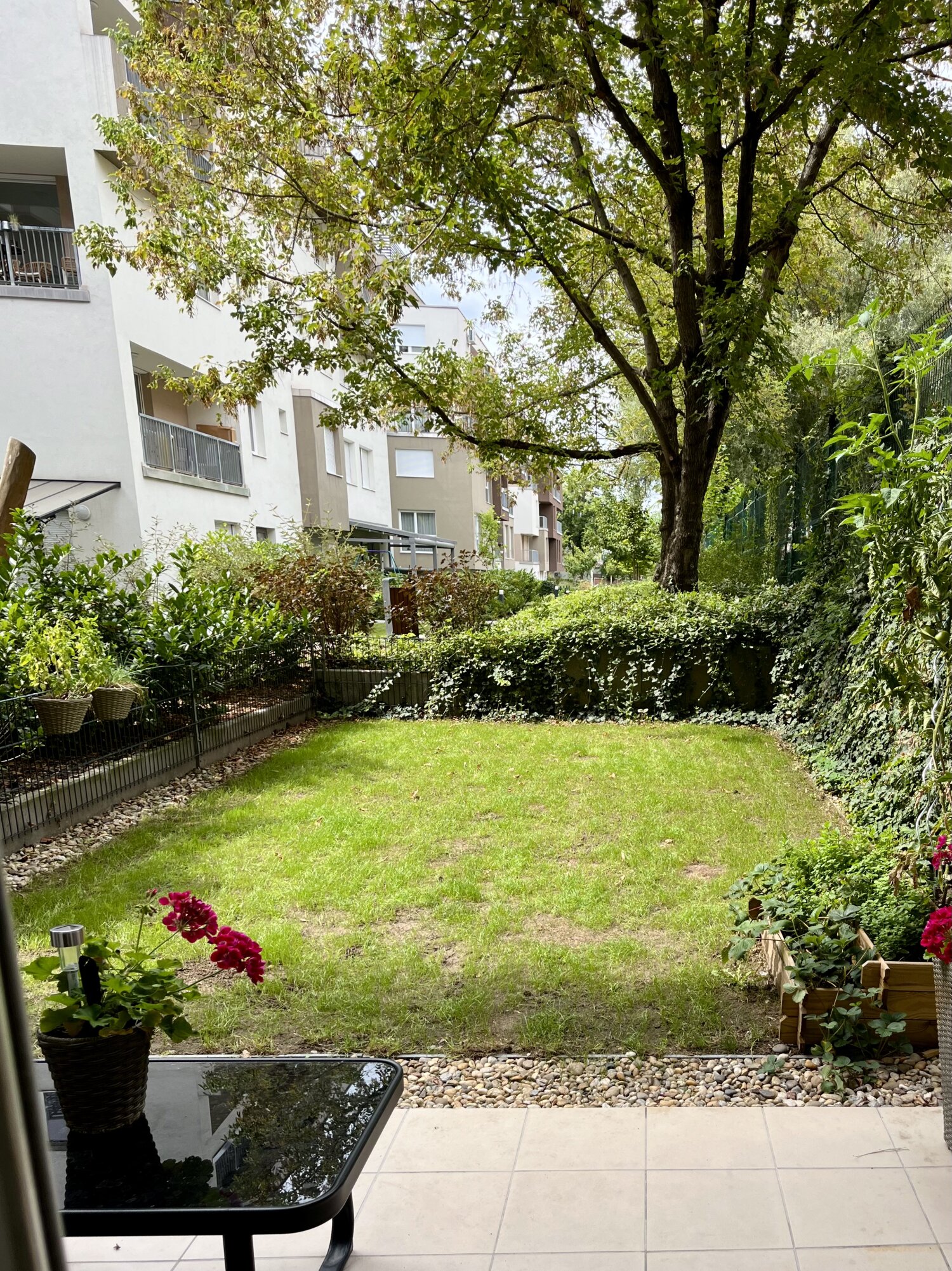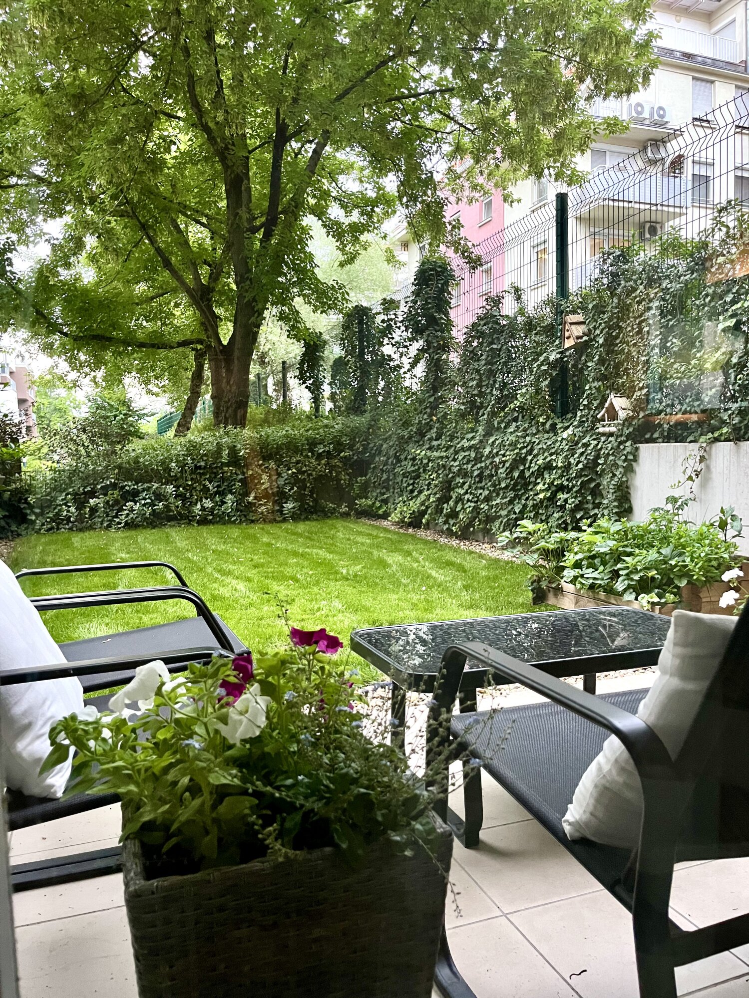 The property has a front- and a back garden. The front garden is 21 sqm, from here you enter the apartment, the back garden is 29 sqm, it is completely independent from the apartment complex, so it provides a private space for a barbecue in the garden or for a conversation with friends.