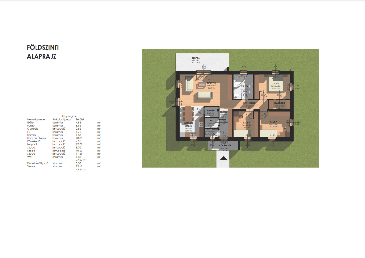 A ház 88 nm-es, nappali+amerikai konyha található benne, három hálószoba, és egy fürdőszoba.