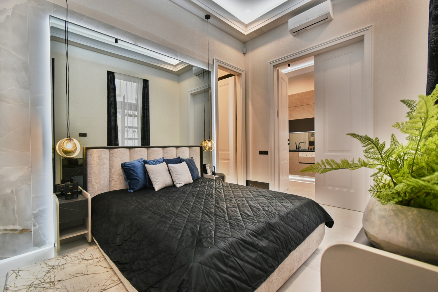 A szobákban külön szabályozható klímaberendezés található, valamint falba süllyesztett biztonsági széf is kialakításra került.
