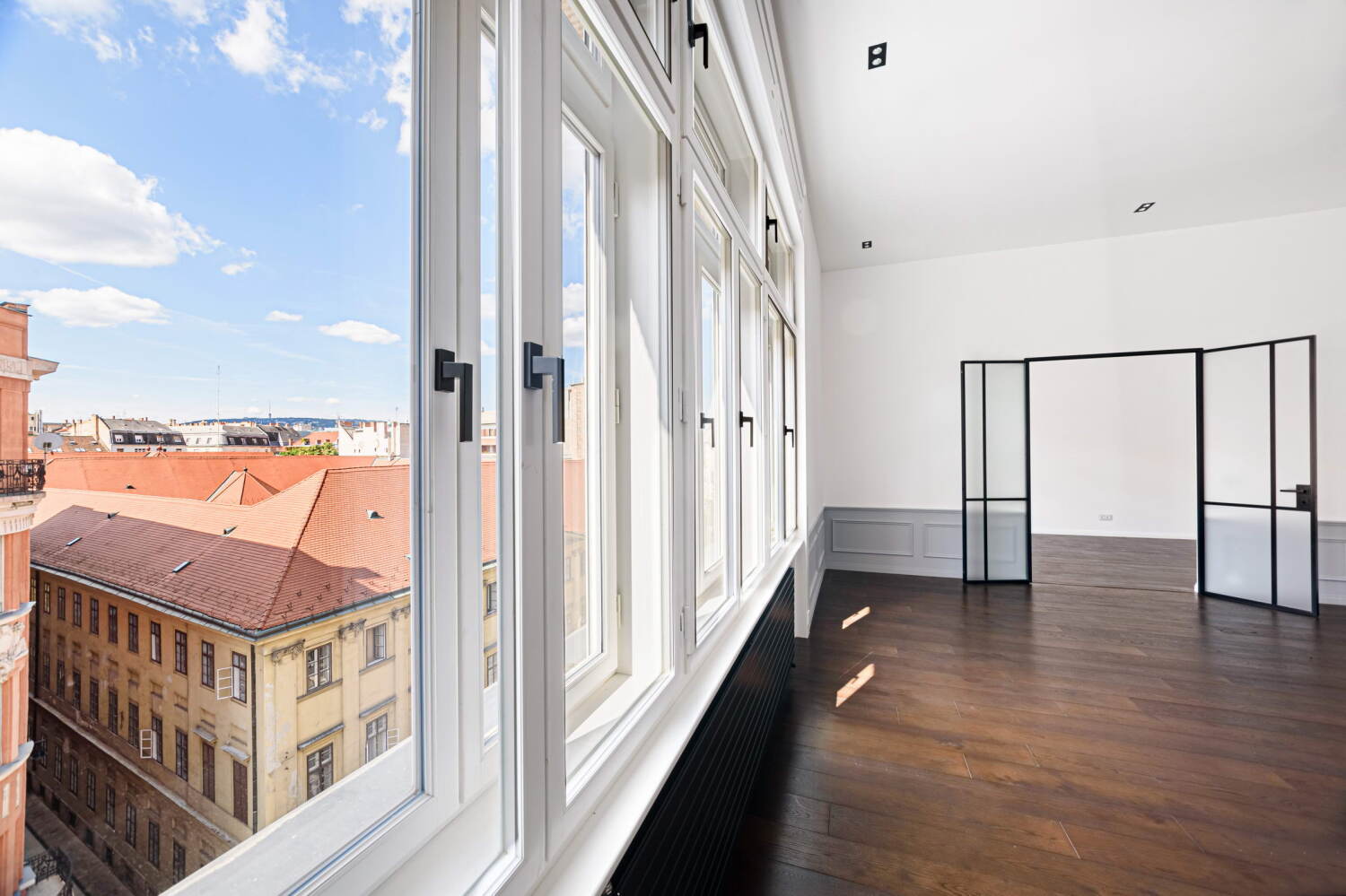 BUDAI HEGYEKRE PÁRIZSI PANORÁMÁS, PRÉMIUM KATEGÓRIÁS, ÚJSZERŰ, ELEGÁNS LAKÁS A BELVÁROSBAN, HŐSZÍVATTYÚS FŰTÉSSEL
