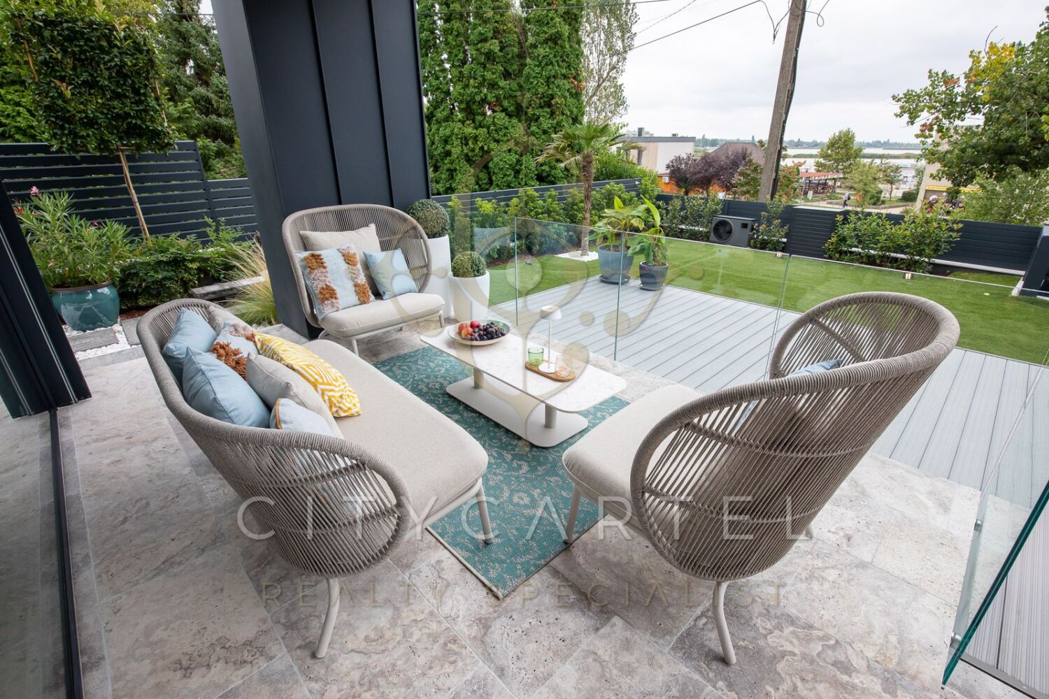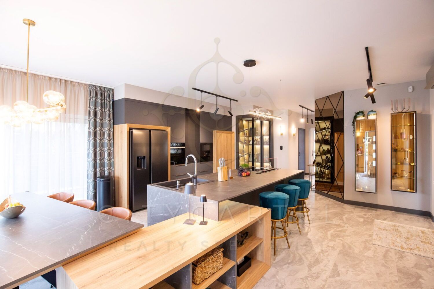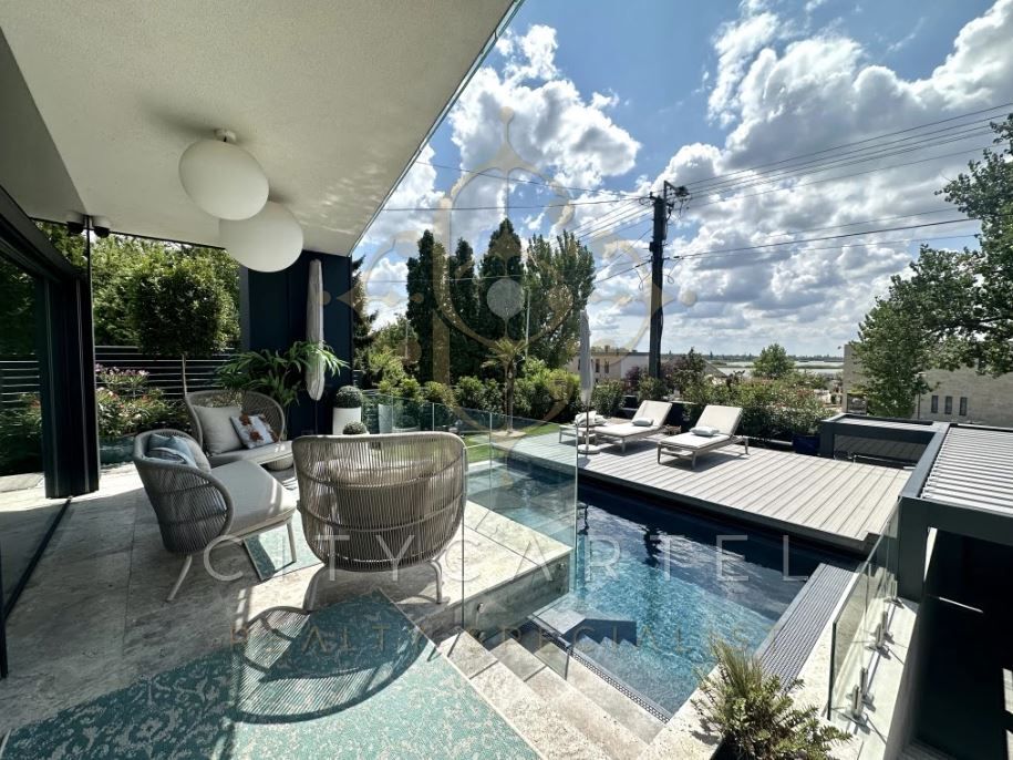 Just 40 km from Budapest, in the most sought-after area of Lake Velence—Velence itself—this exclusive, two-story 213 sqm (+ attic) luxury villa with four rooms is now for sale. Completed in 2023, it features extravagant details and modern elegance. The 540 sqm landscaped garden, the lakeside panorama, the infinity-edge pool, and premium furnishings are all included in the purchase price. The villa’s interior was created by renowned designers, with carefully chosen pieces from MaxCity, KARE, Dutch Home Studio, and Art&Deco that captivate you immediately. Its layout is both comfortable and practical: an American-style kitchen and living area, three bedrooms, three bathrooms, a mechanical room, a spacious attic, a laundry room, and a wine vault. High-end amenities include Internorm windows, a Legrand smart-home system, an Ariston gas boiler with underfloor heating, GREE air conditioning, Wolf heat-recovery ventilation, and a central BWT water softener. Outdoors, you’ll find a stunning infinity pool with a movable cover, custom PALMIYE pergolas, a GRILLANDIA outdoor kitchen, and a tasteful garden. Security is assured by an electric gate, a PARADOX alarm system, and surveillance cameras. A two-car garage is also ready for electric vehicle charging. The property is free of encumbrances, classified as residential, and available for immediate occupancy. Listed at HUF 550 million, the price includes all high-quality furnishings. If you desire tranquility, comfort, and a luxurious lifestyle, don’t miss this outstanding opportunity by the shores of Lake Velence!