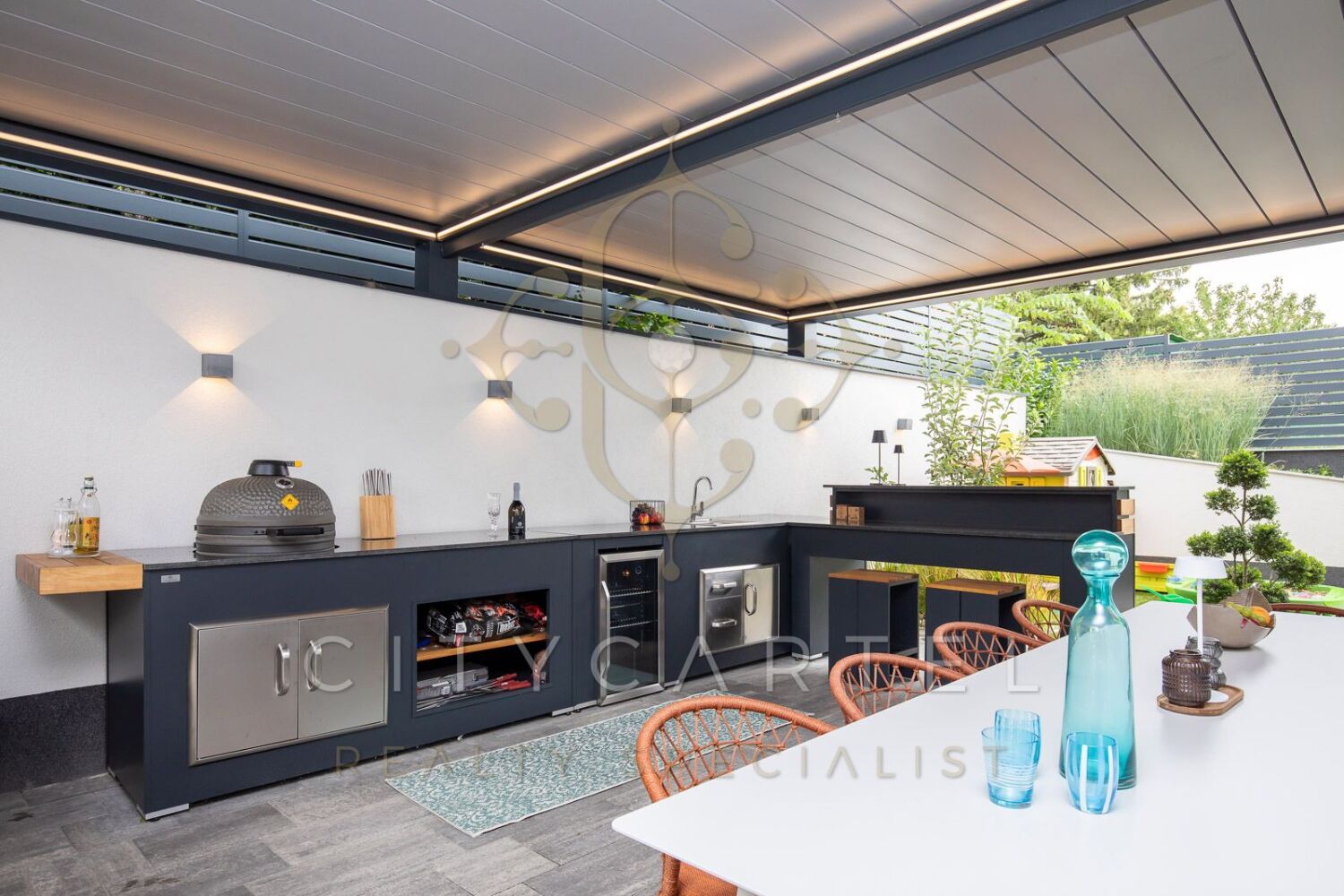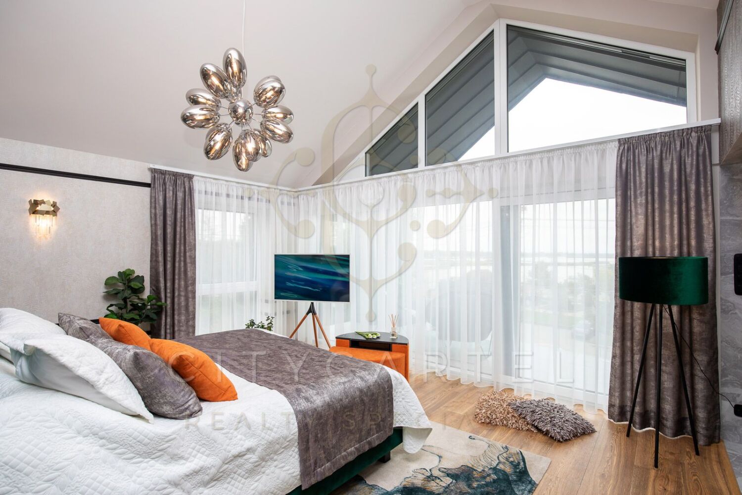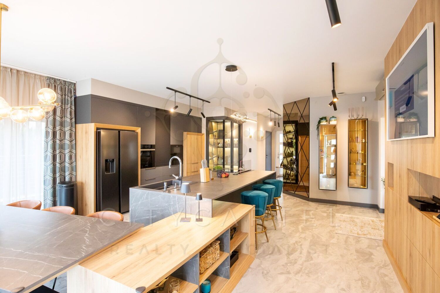 Just 40 km from Budapest, in the most sought-after area of Lake Velence—Velence itself—this exclusive, two-story 213 sqm (+ attic) luxury villa with four rooms is now for sale. Completed in 2023, it features extravagant details and modern elegance. The 540 sqm landscaped garden, the lakeside panorama, the infinity-edge pool, and premium furnishings are all included in the purchase price. The villa’s interior was created by renowned designers, with carefully chosen pieces from MaxCity, KARE, Dutch Home Studio, and Art&Deco that captivate you immediately. Its layout is both comfortable and practical: an American-style kitchen and living area, three bedrooms, three bathrooms, a mechanical room, a spacious attic, a laundry room, and a wine vault. High-end amenities include Internorm windows, a Legrand smart-home system, an Ariston gas boiler with underfloor heating, GREE air conditioning, Wolf heat-recovery ventilation, and a central BWT water softener. Outdoors, you’ll find a stunning infinity pool with a movable cover, custom PALMIYE pergolas, a GRILLANDIA outdoor kitchen, and a tasteful garden. Security is assured by an electric gate, a PARADOX alarm system, and surveillance cameras. A two-car garage is also ready for electric vehicle charging. The property is free of encumbrances, classified as residential, and available for immediate occupancy. Listed at HUF 550 million, the price includes all high-quality furnishings. If you desire tranquility, comfort, and a luxurious lifestyle, don’t miss this outstanding opportunity by the shores of Lake Velence!
