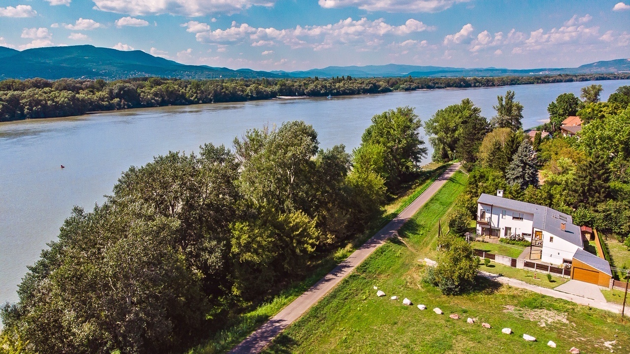Ritka lehetőség kínálkozik egy kortárs építészeti remekmű megvásárlására közvetlenül a Dunaparton, mindössze 15 kilométerre északra Budapest szívétől. A modern villa lenyűgöző, panorámás kilátást nyújt a Dunára és a környező érintetlen rétekre. A nemzetközileg elismert, Ybl-díjas építész által tervezett ingatlan mindössze 10 éve épült, és a modern elegancia és a természet közelségének tökéletes egyensúlyát kínálja. A tágas, napfényben fürdő belső terek között egy impozáns nappali, öt kényelmes hálószoba, három elegáns fürdőszoba, valamint egy teljesen felszerelt, külön bejáratú vendéglakrész található – ideális a vendégek teljes nyugalomban és kényelemben történő fogadására. A padlótól a mennyezetig érő ablakok és a gondosan kialakított teraszok elmossák a határt a belső és a külső tér között, így a Duna és a természetes táj látványa minden pillanatban átélhető. Legyen szó pihenésről a kertben, vendéglátásról a teraszon, vagy az otthon melegéből való gyönyörködésről – ez a villa minden pontján nyugalmat és kifinomultságot sugároz.