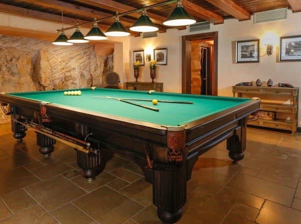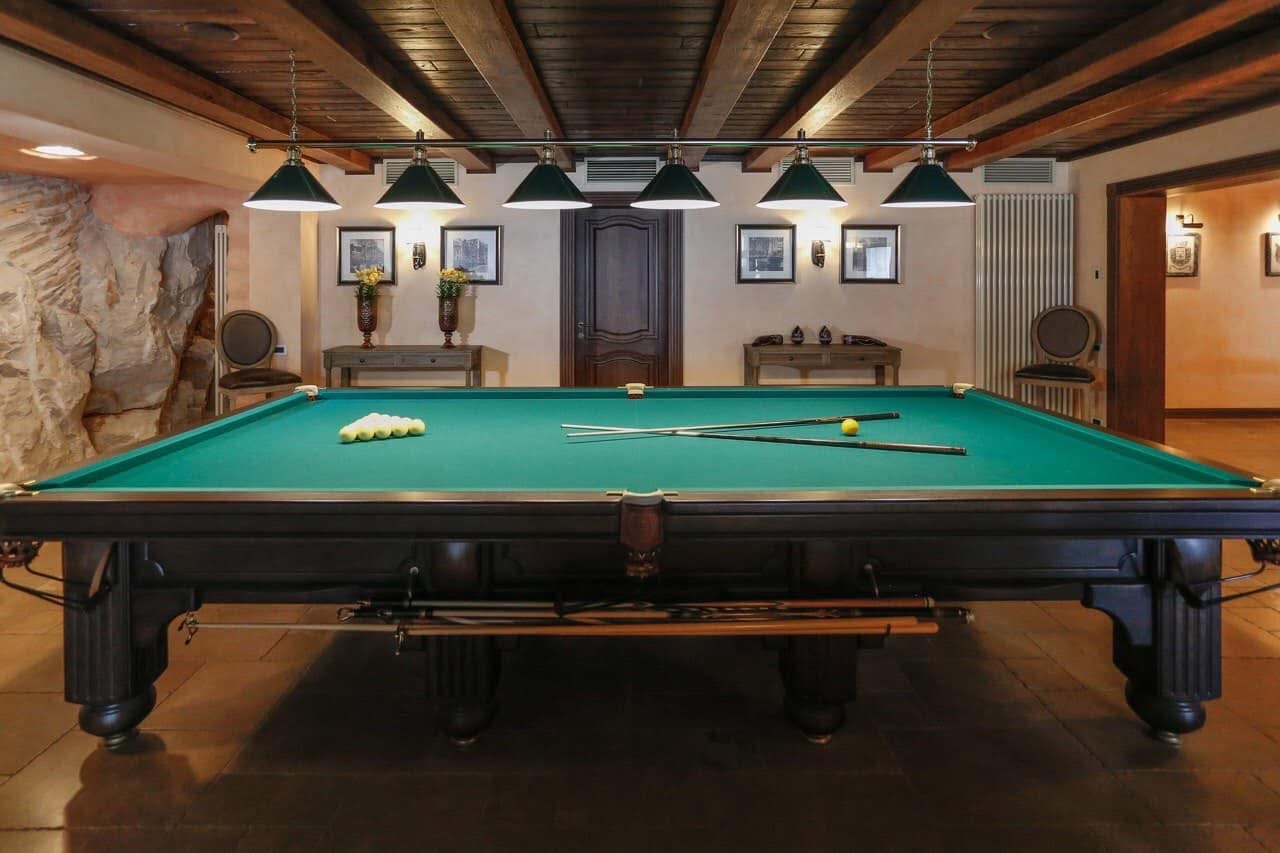 Ezen az emeleten található még egy nagy öltöző, mosókonyha, borospince, biliárdasztal, hozzáférés a műszaki helyiséghez és egy garázs három autó számára.