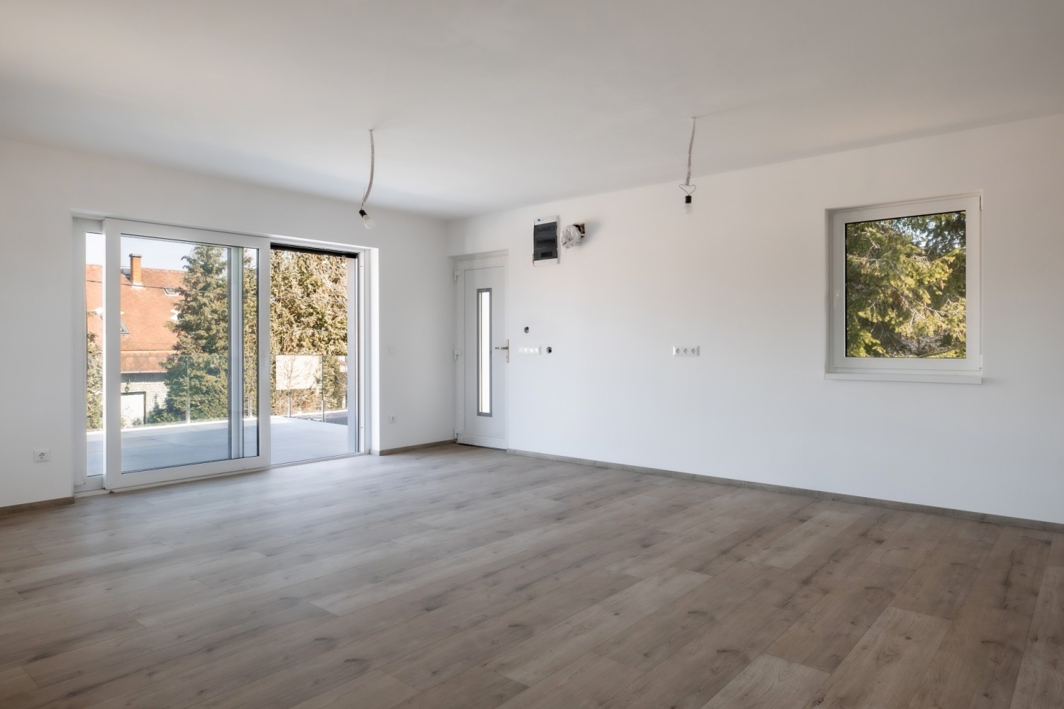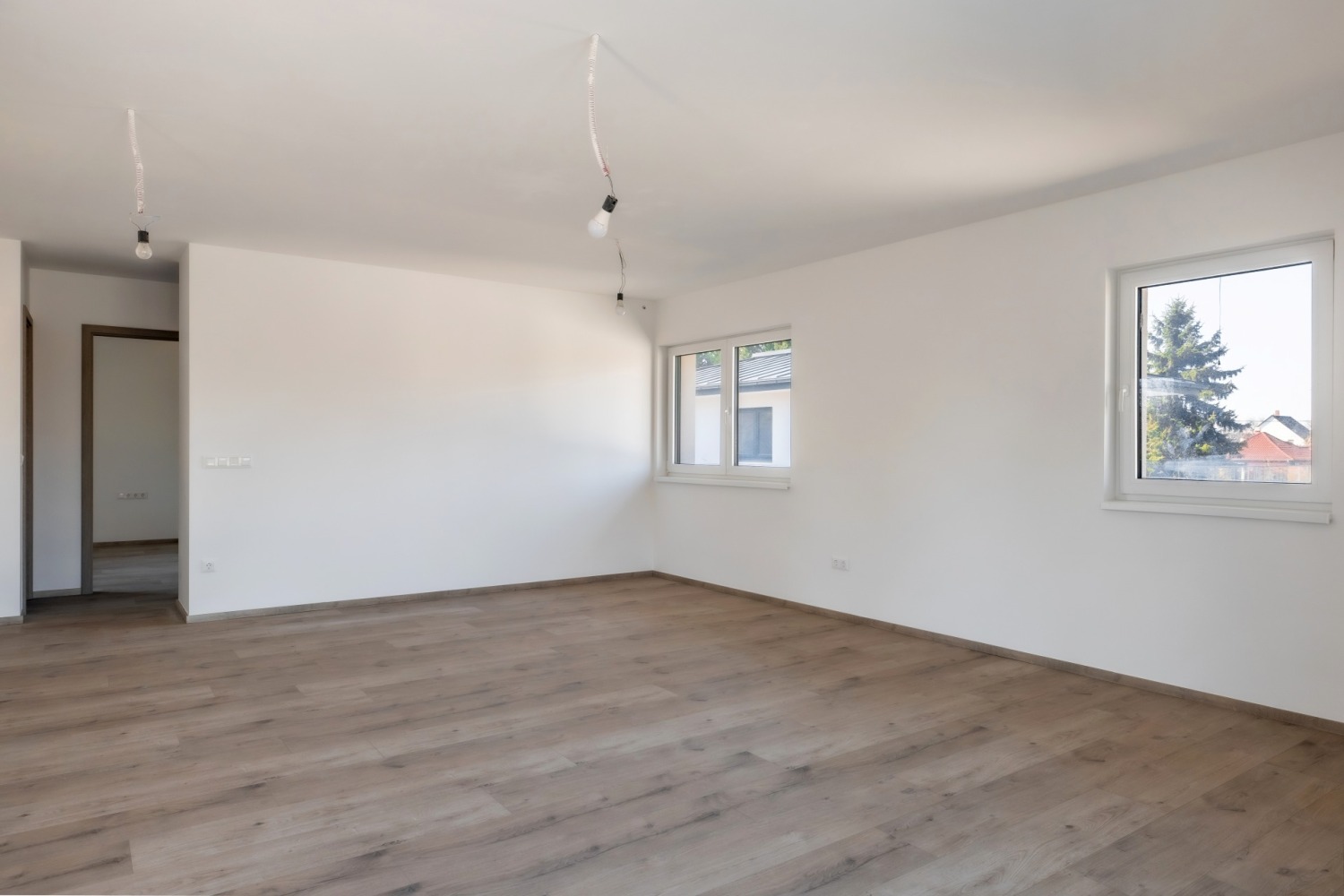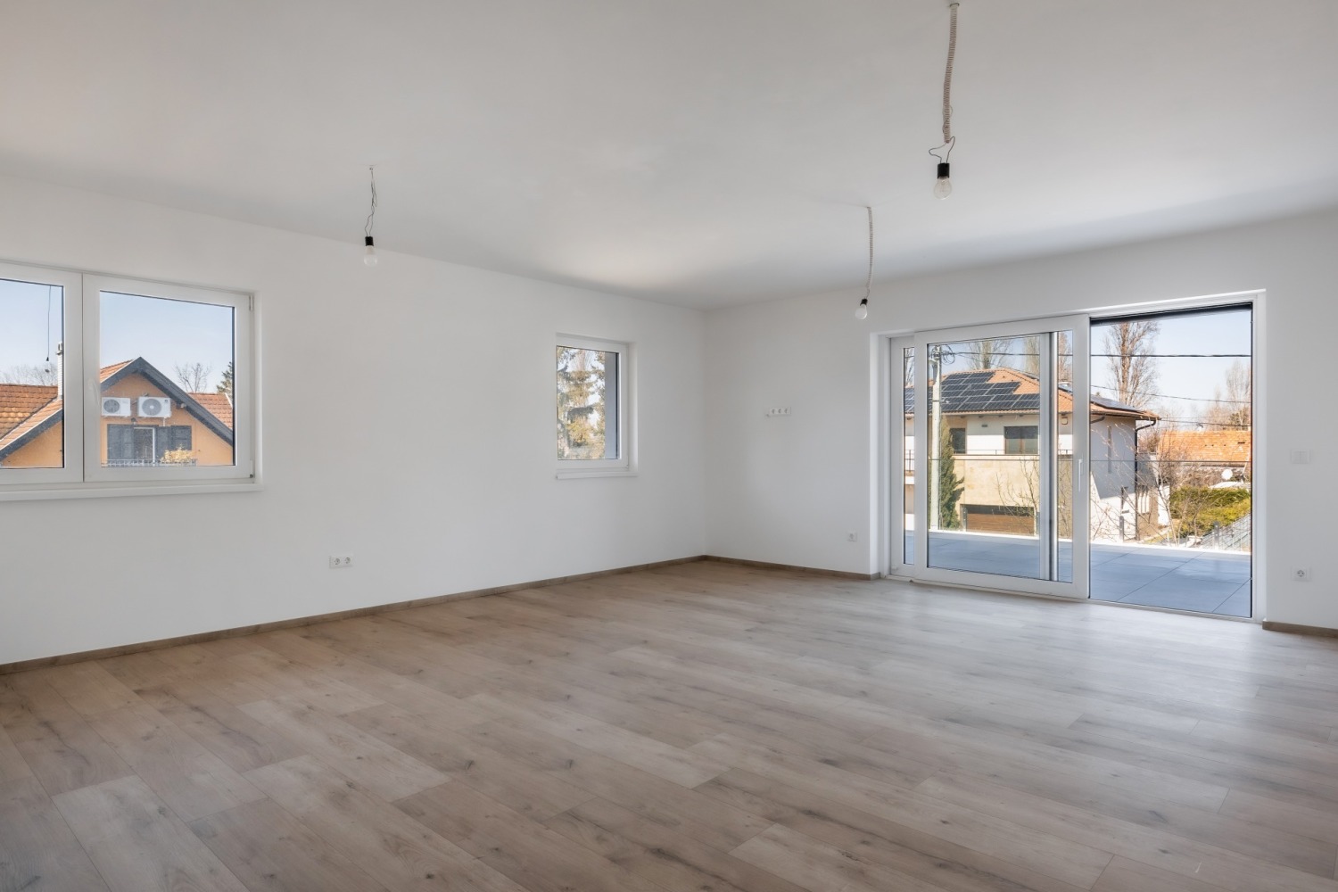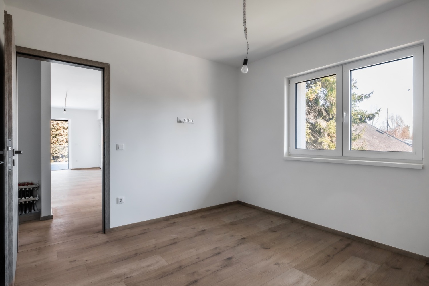 A műanyag nyílászárók 3 rétegű üvegezéssel és beépített rejtett tokos redőnnyel és szúnyoghálóval rendelkeznek. A redőny elektromos működtetésű.