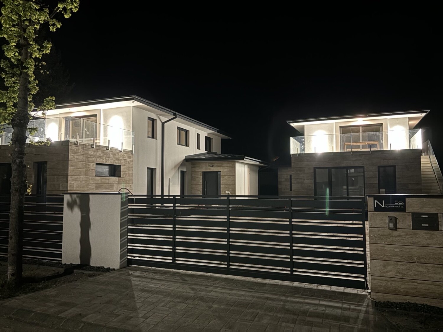 A kapuk mozgatása motoros működtetésű, a külső bejárathoz videó kaputelefon került.