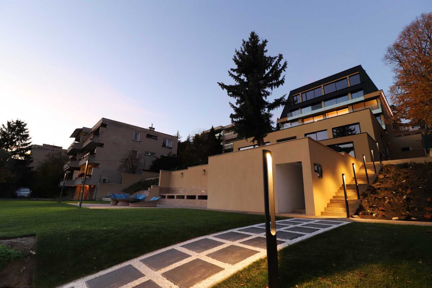 Ilyen méretű privát kert újépítésű budai társasházban extrém ritka.