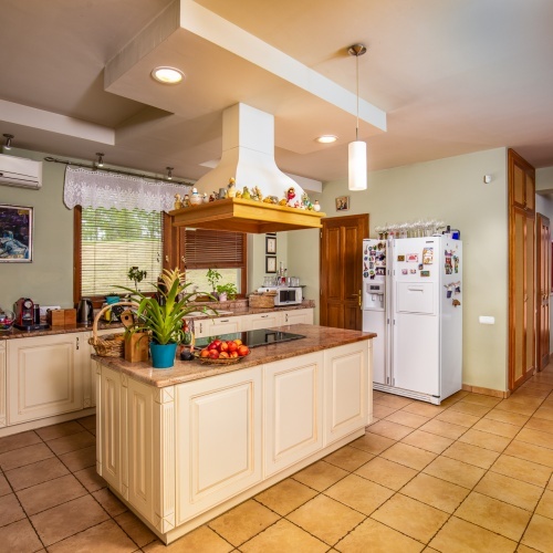 Fűtés: villanyos padlófűtés, radiátorok, valamint egy nagy méretű, fával fűthető cserépkályha