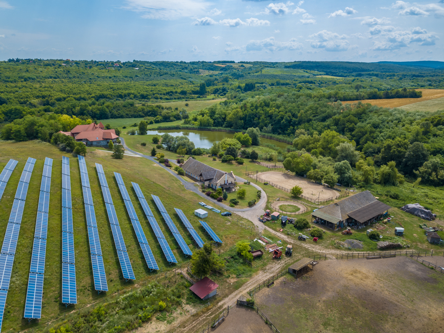 Szomszédos napelempark (500 kW teljesítmény, kb. 1 hektáros területen), csak a birtokkal együtt vásárolható meg